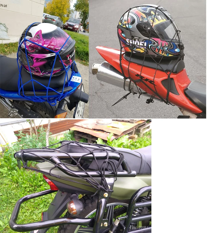 • Essential for storing spare helmets and jackets or equipment and luggage while you’re on the road, the net is made from bungee cord, has 6 hooks to hold down luggage and other things.