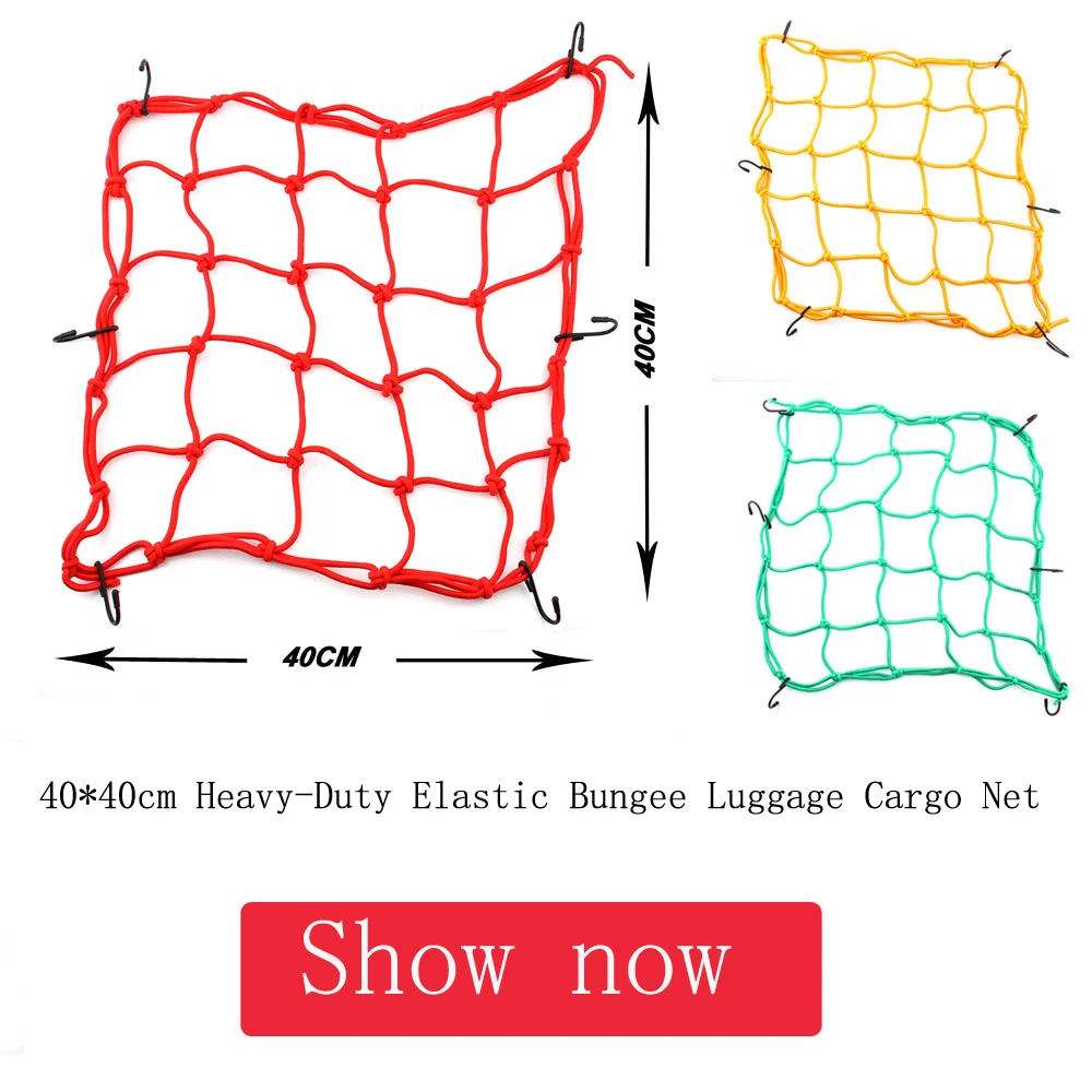 40*40cm Bungee Luggage Cargo Net Mesh Holder 6 Adjustable Hooks for Motorcycle Tank Helmet ATV Bike