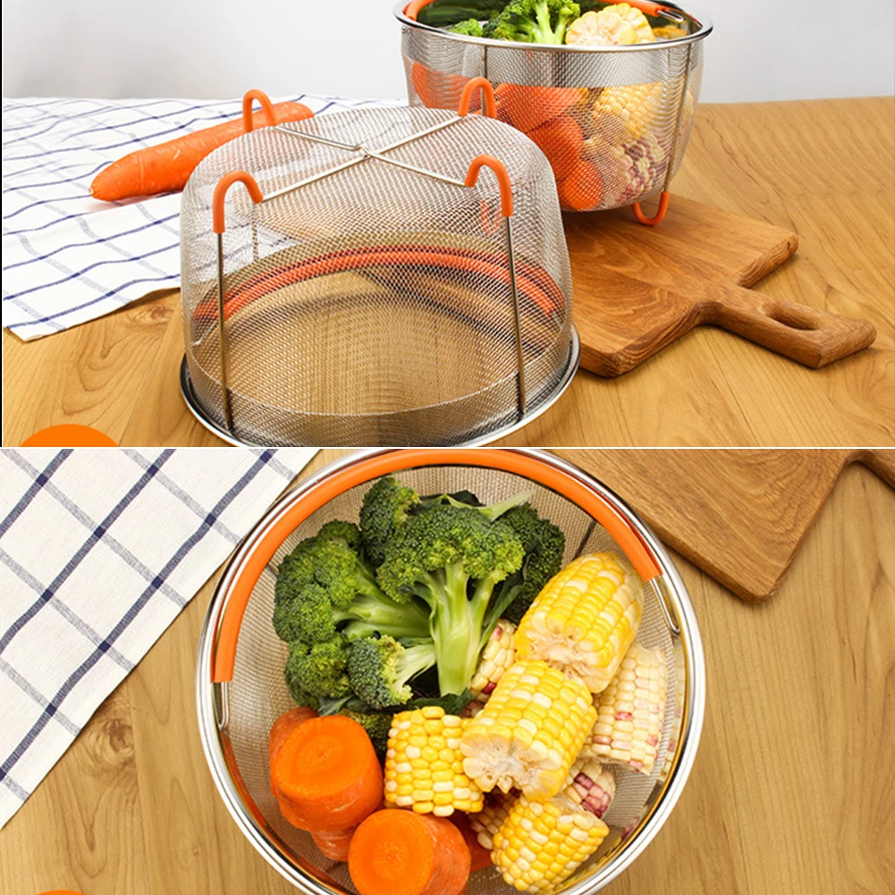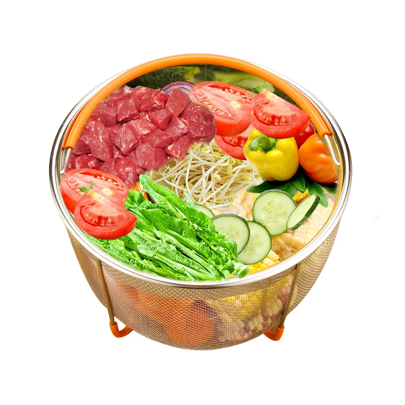 304 Stainless Steel Steamer Rice Cooker Steamer Instant Pot Steam Basket With Silicone Handle Kitchen Colander Steamer