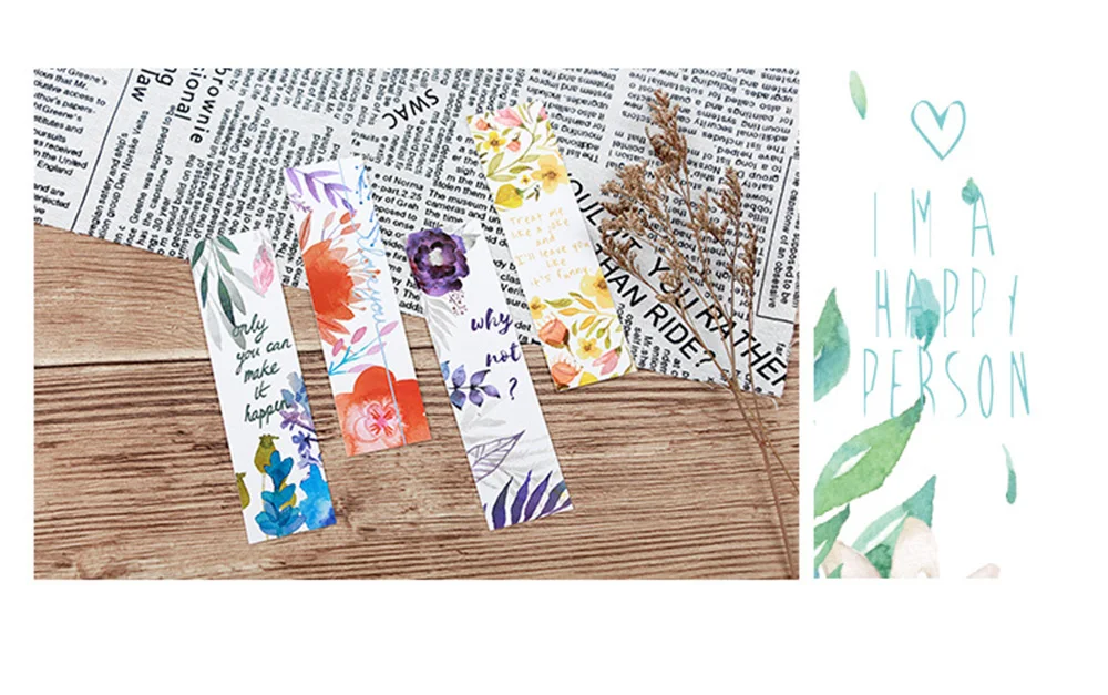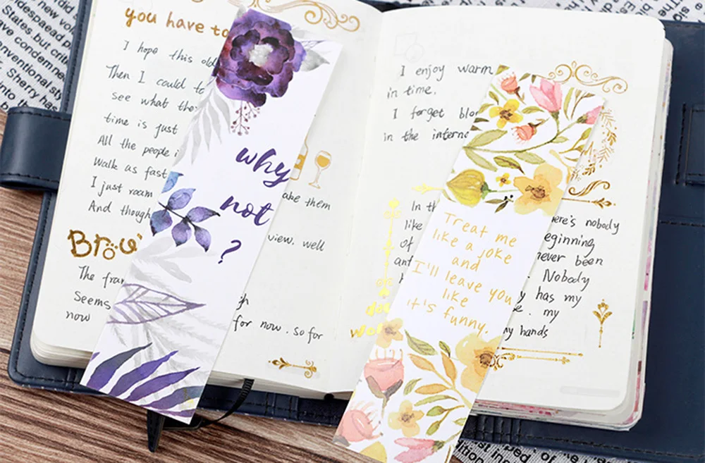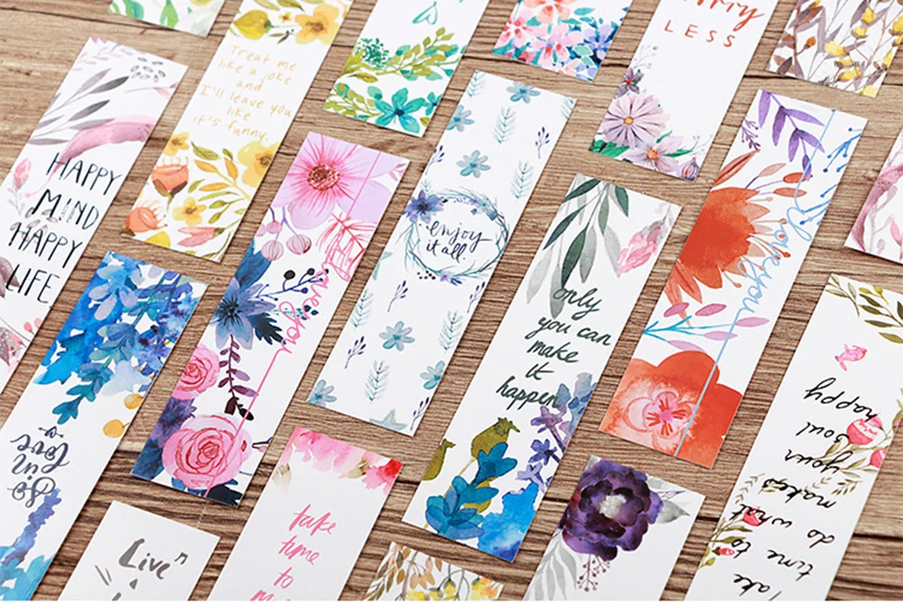 30Pcs/set Flowers Bookmarks Message Cards Book Notes Paper Page Holder for Books School Supplies Accessories Stationery