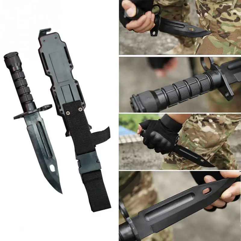 30X8cm M9 Tactical Training Dagger Cosplay Plastics Knife Hunting War Movie Props Scabbard ABS Plastic Blade Rubber Knife NEW