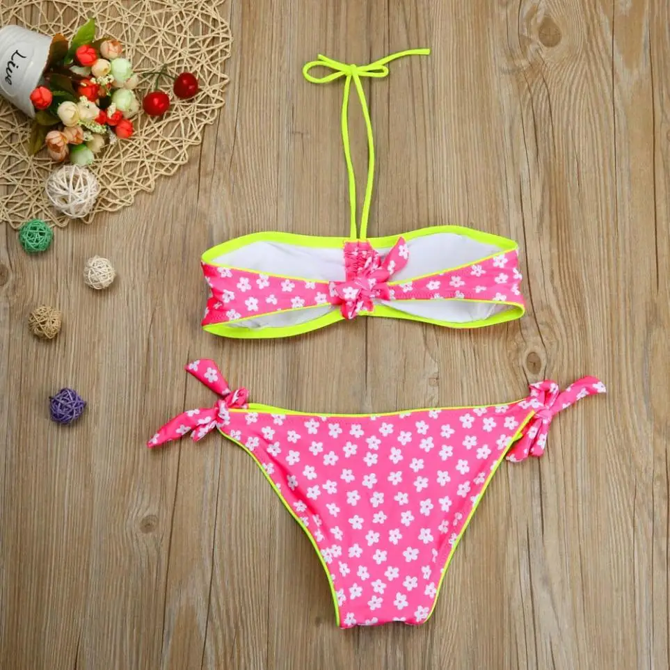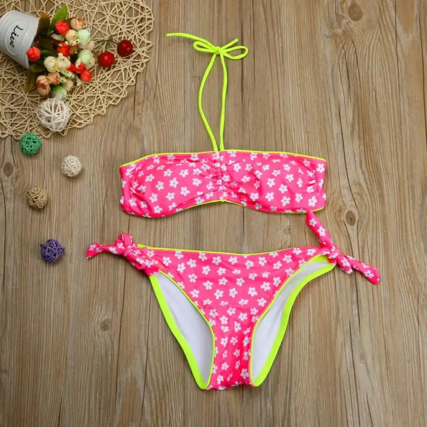 3~12y Baby Kids Girls Solid Swimwear Flower Bathing Suit Bikini Clothes 2018 New Summer Girls Bathing Suit Children Swimwear