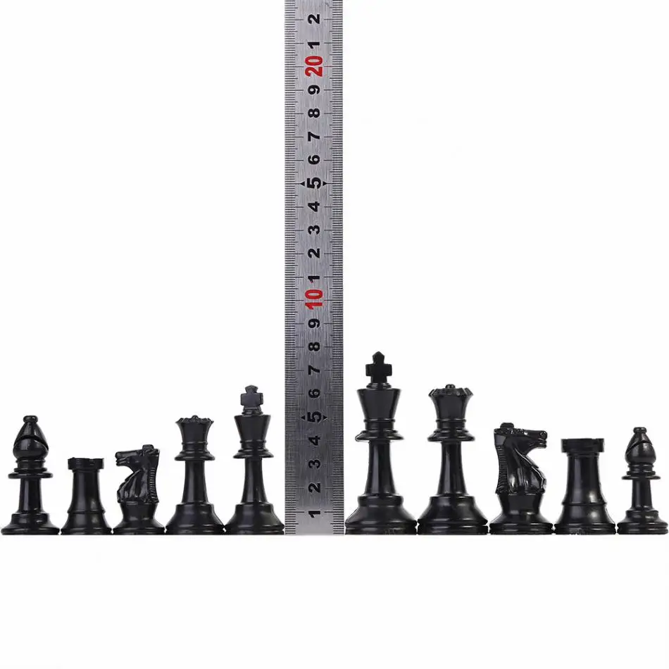 32 Medieval Plastic Chessmen Set International Word Chess Game Complete Chessmen Black&White Set 64/77MM