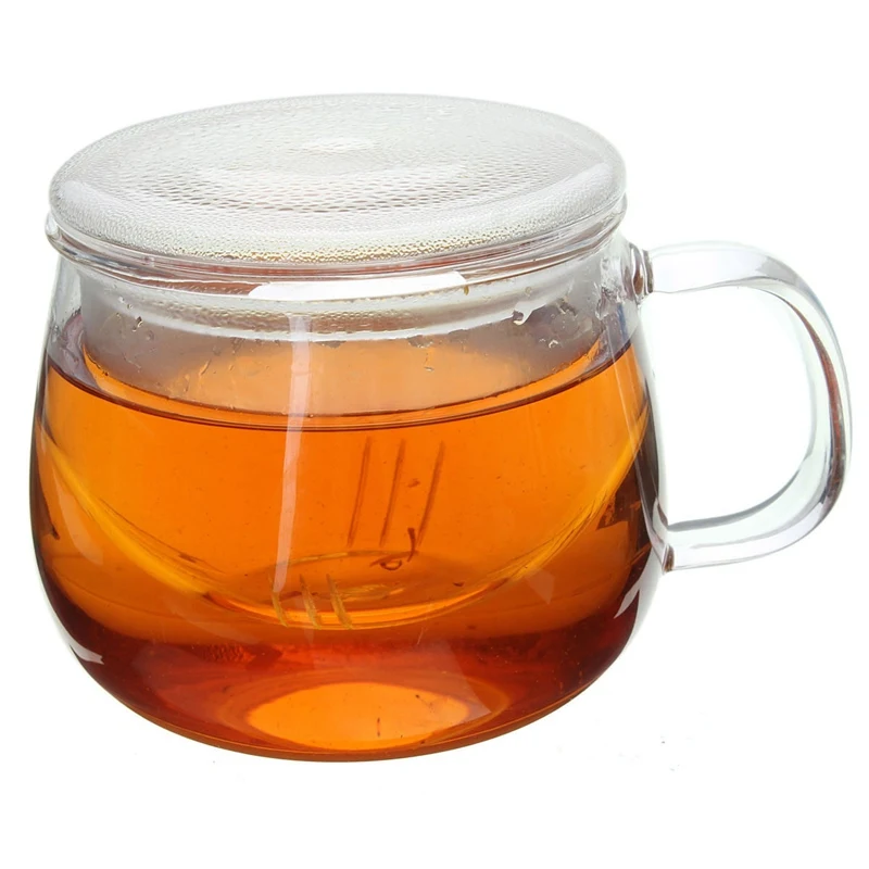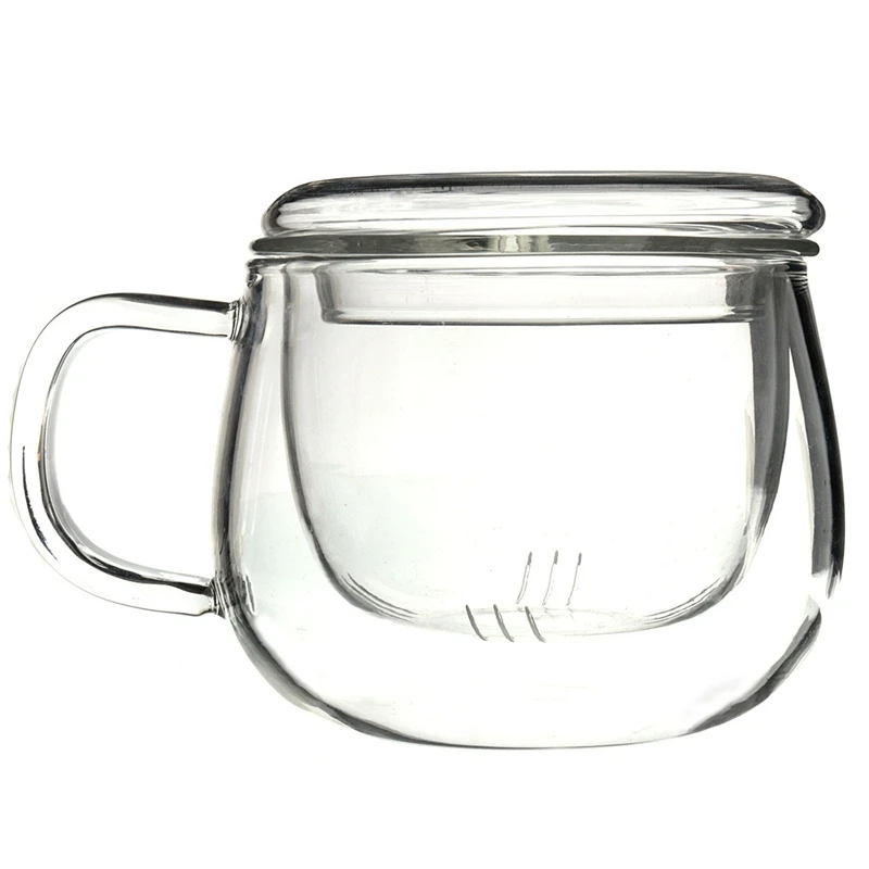 1 x Clear Glass Cup with Tea Infuser Filter & Lid
