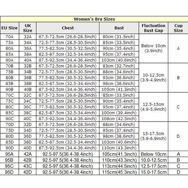 Size: 75,80,85,90 (Band size: 34,36,38,40 Cup: B,C)
