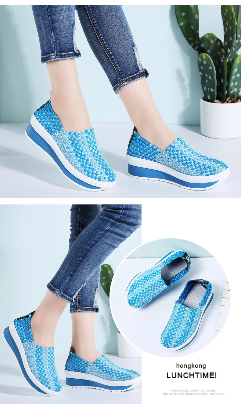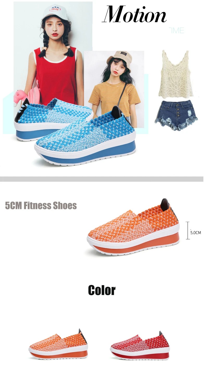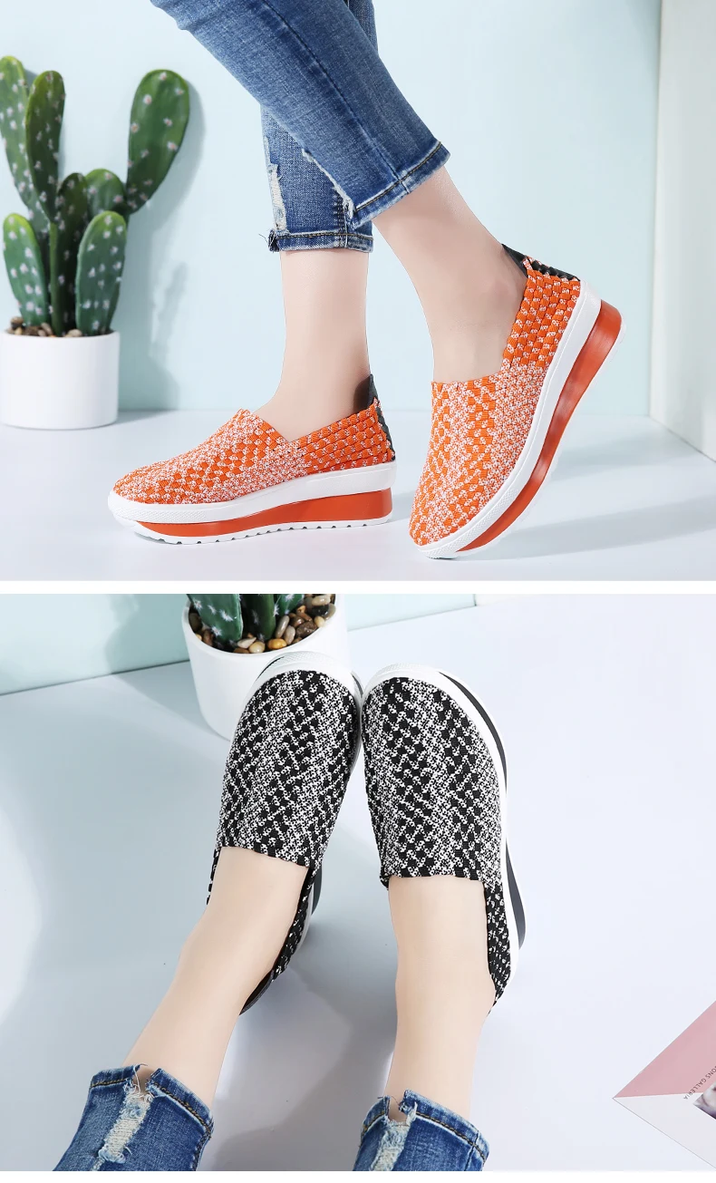 35-40 Slimming Woven Wedges 5CM Heels Women Sports Shoes Handmade Girls Breathable Lady Summer Fitness Shoe Walking Sneakers
