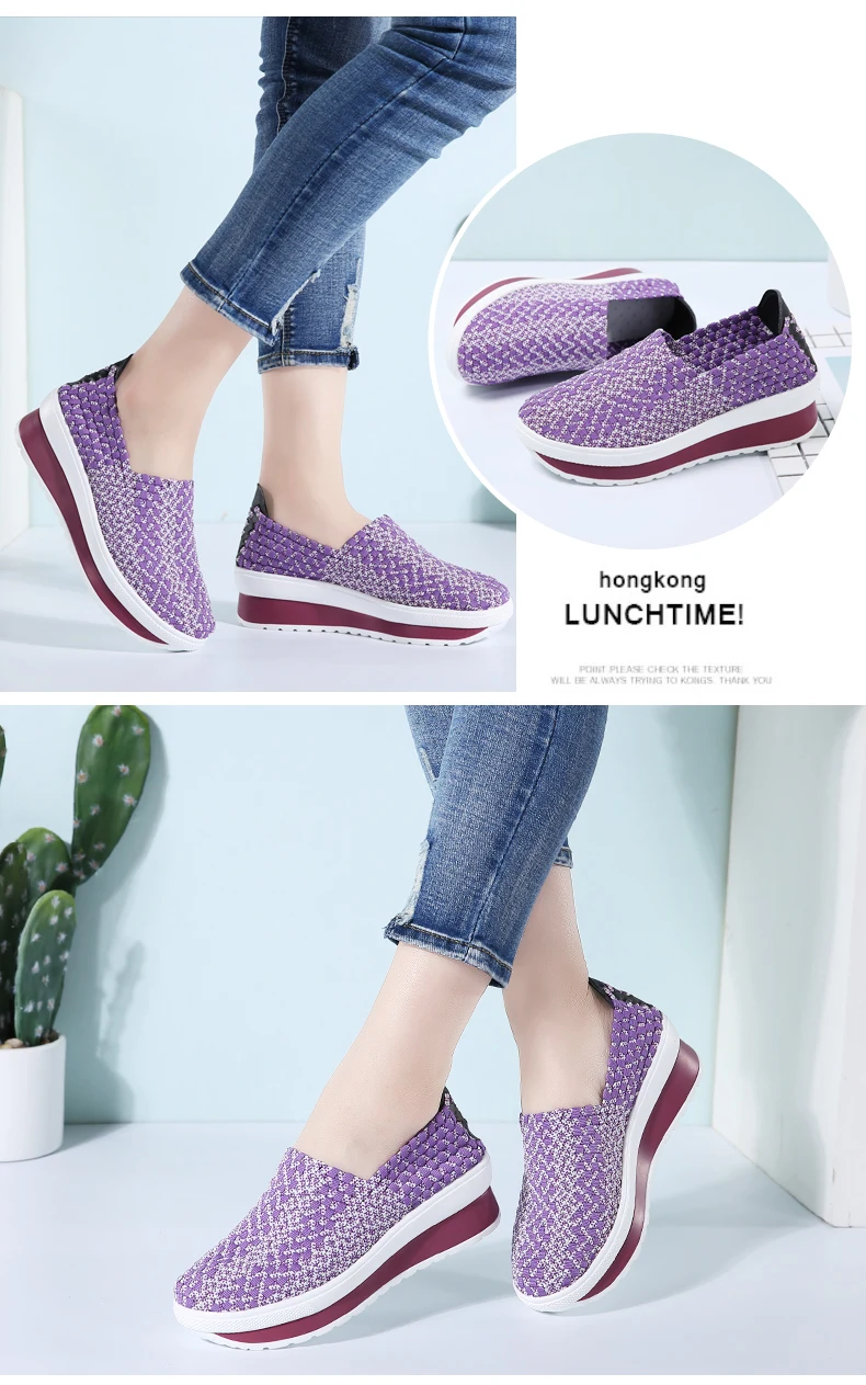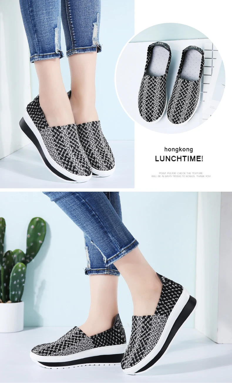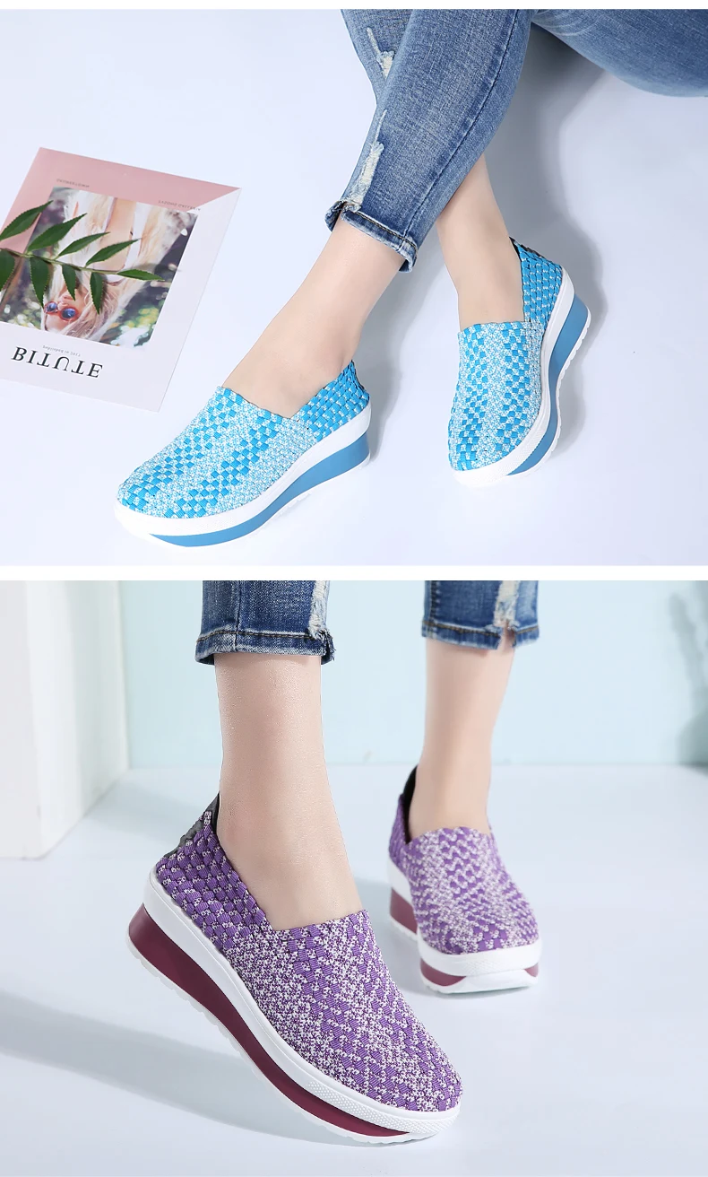 35-40 Slimming Woven Wedges 5CM Heels Women Sports Shoes Handmade Girls Breathable Lady Summer Fitness Shoe Walking Sneakers