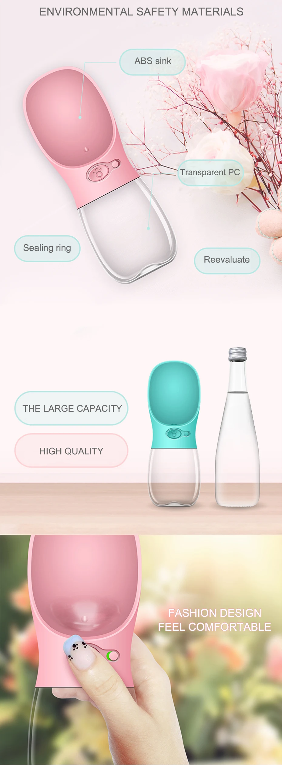Feature: made from high quality food grade material with the 350ml moderate capacity, the bottle is very convenient for you to carry out, provide fresh and clean water for your pets anytime and everywhere.