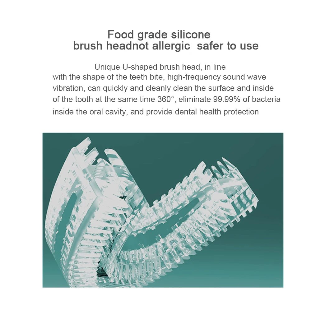360 Degree Automatic Electric Toothbrush Head Rechargeable Sonic Dental Toothbrush Heads USB Silicone Brush Teeth Heads U Type
