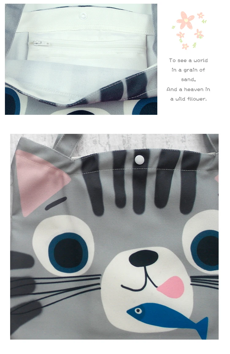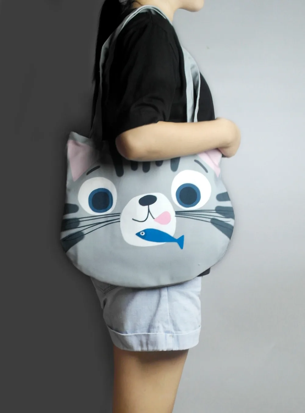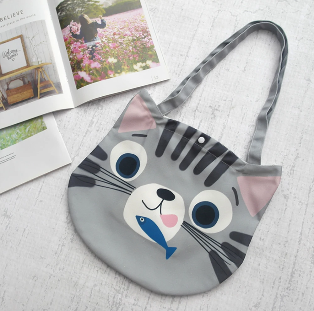3D Cat Head Canvas Bag Cat Backyard Shoulder Portable Bags Simple Shopping Tote Handbag Tote Bags for Girls