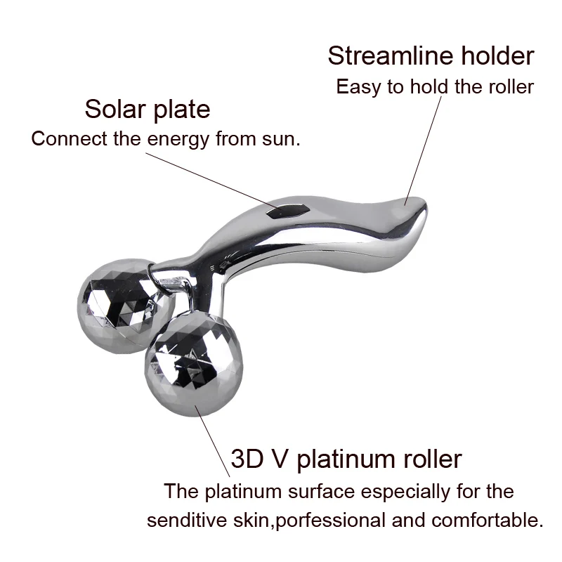 Descripition:3D Full Body Shape Massager absorbs light through a Solar panel and generates a weak electrical ” micro-current” that is very similar to the body’s own current. Daily treatment with the roller on the surface of your skin affects skin texture, making its appearance supple, shiny and firm.
