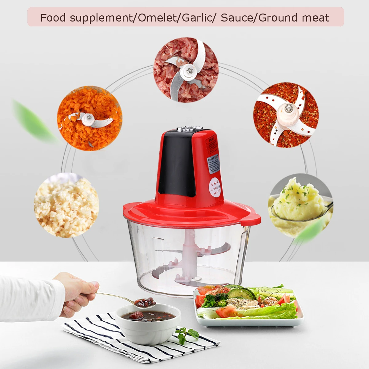 3L 220V 50Hz 250W Red Multifunctional Electric Meat Grinder Food Chopper US 2 Pin Plug Split Design Rated Working Time 20s