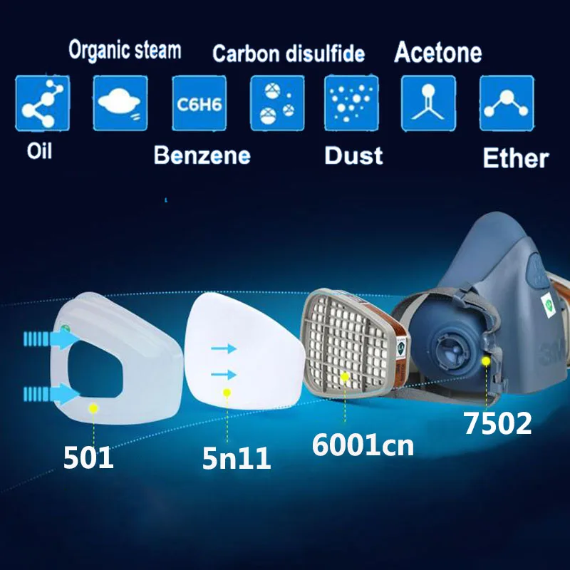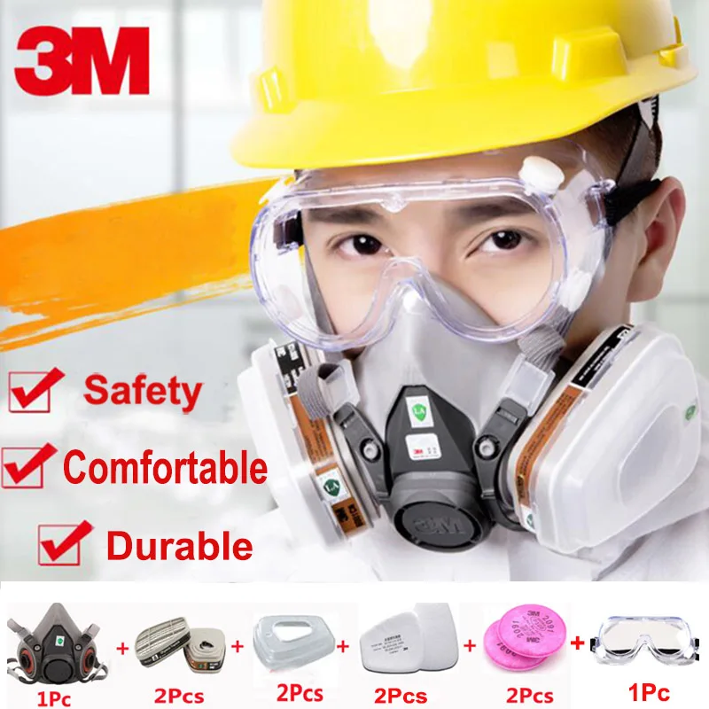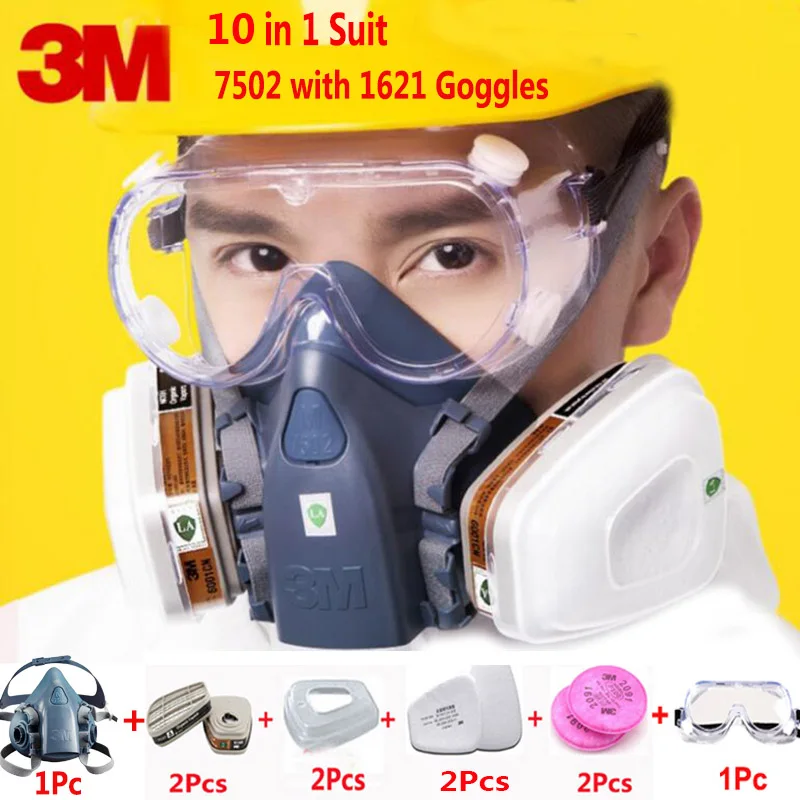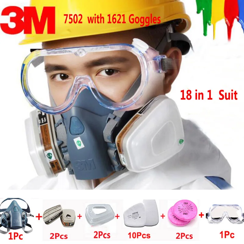 3M 6200 7502 Half Face Respirator Suit Industry Paint Spray Chemcial Dust Proof Gas Mask With 1621AF Anti-fog Goggles