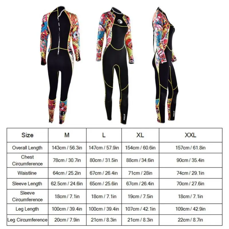 3mm Women Slim Long Sleeve Wetsuit Scuba Snorkeling Swimsuit Full Body Jumpsuits Diving suit for Swimming Surfing Sports Clothing