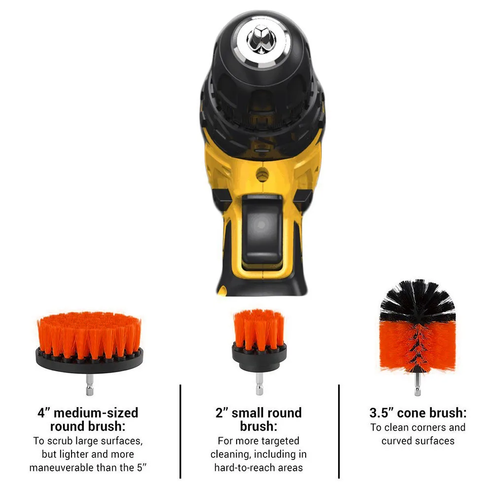 • This drill brush attachment kit includes 3 brushes with different sizes and shapes to fit into most of the cordless drills, such as Dewalt, Bosch and Makita etc.