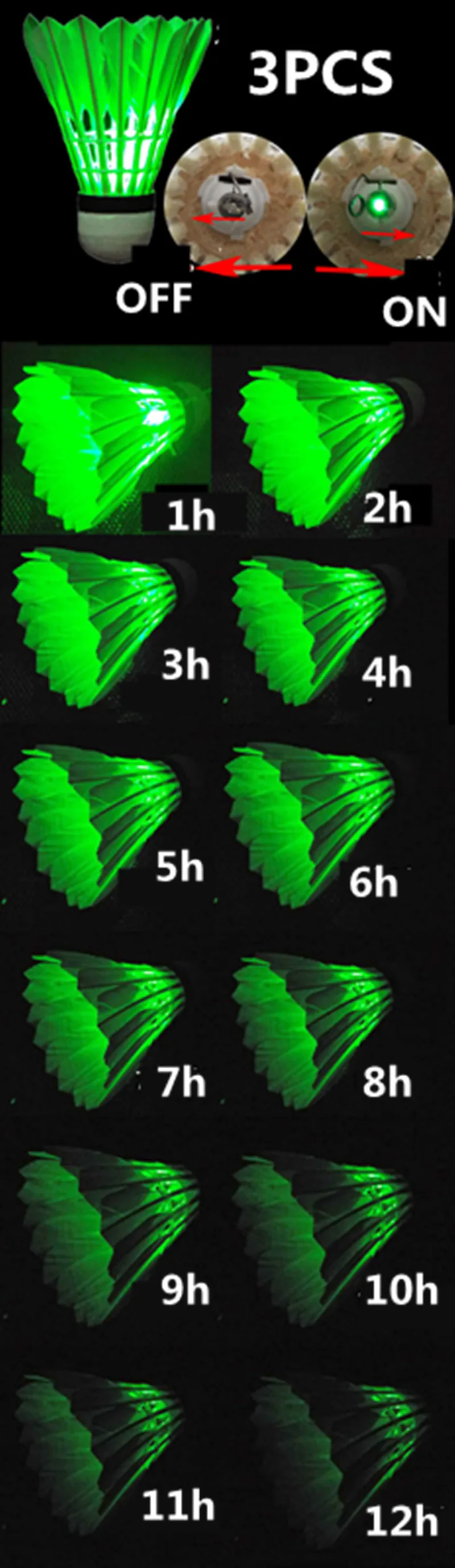 3Pcs Green Light Balls Badminton Shuttlecocks Dark Night LED Glowing Light-up Goose Feather Indoor Outdoor Sports L436yumaoOLA