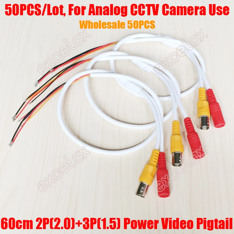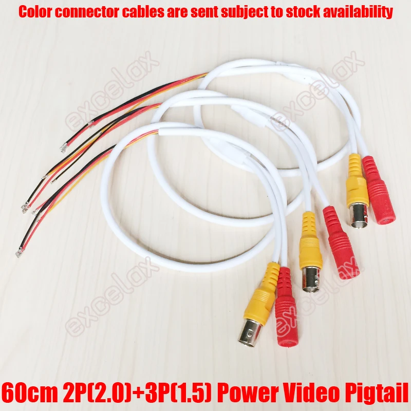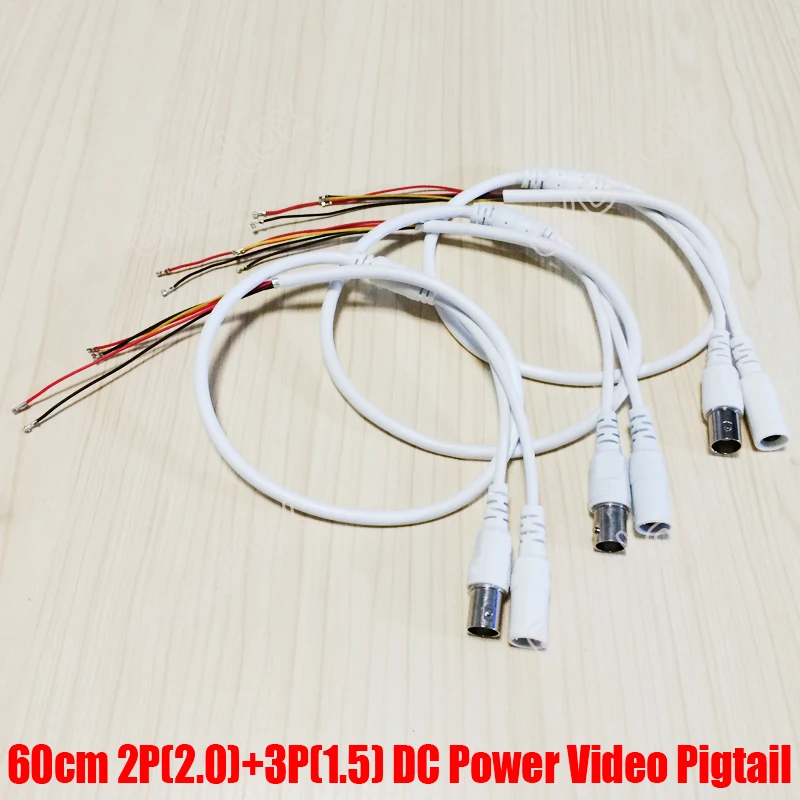 3PCS/Lot 60cm 5 Pin Power Video Cable Power Lead Pigtail Female BNC 12V Connector Stripped Wire for Analog CCTV Camera PCB Board