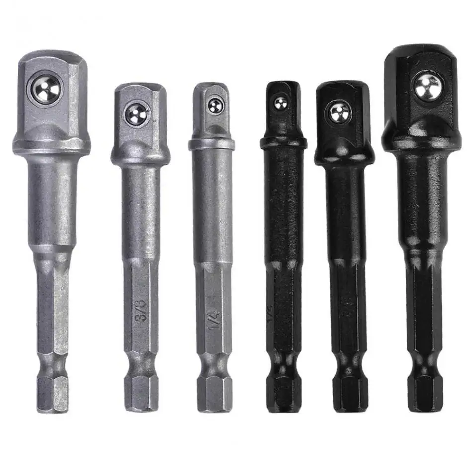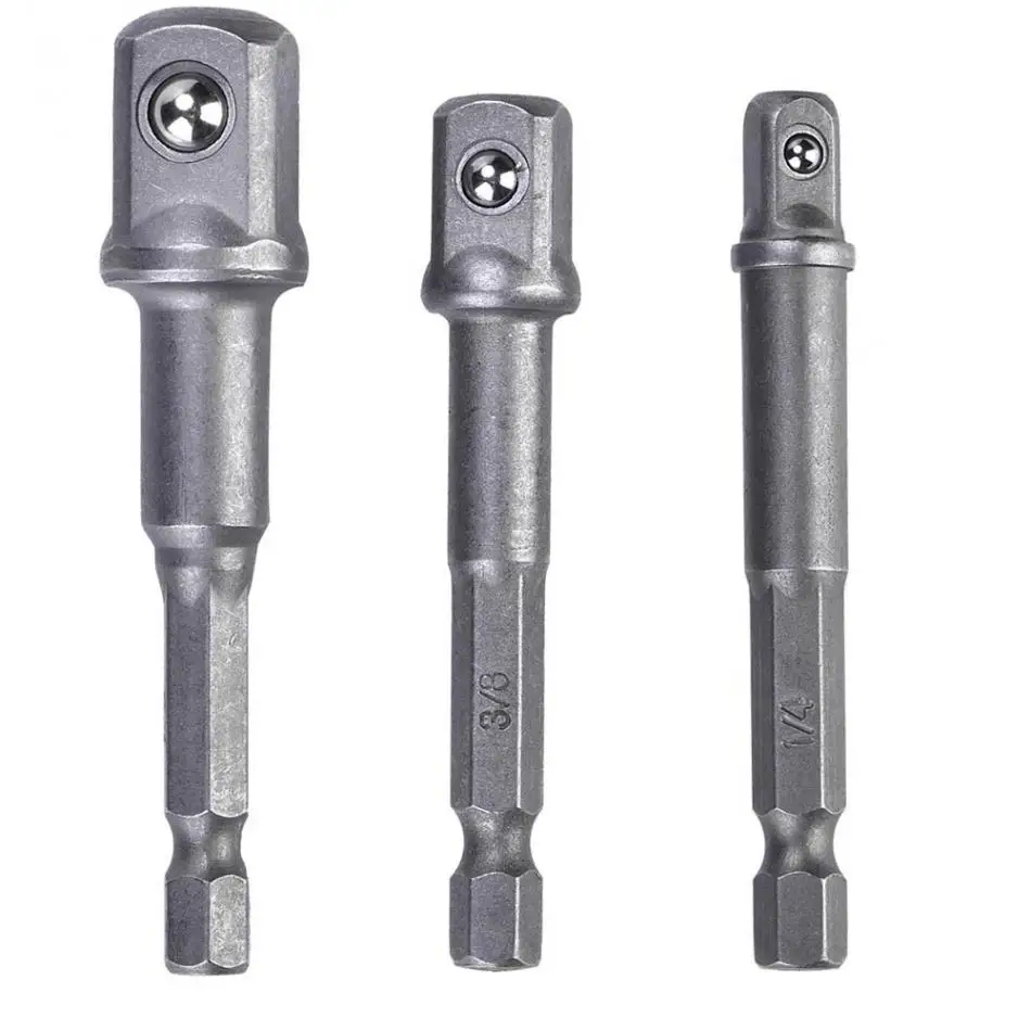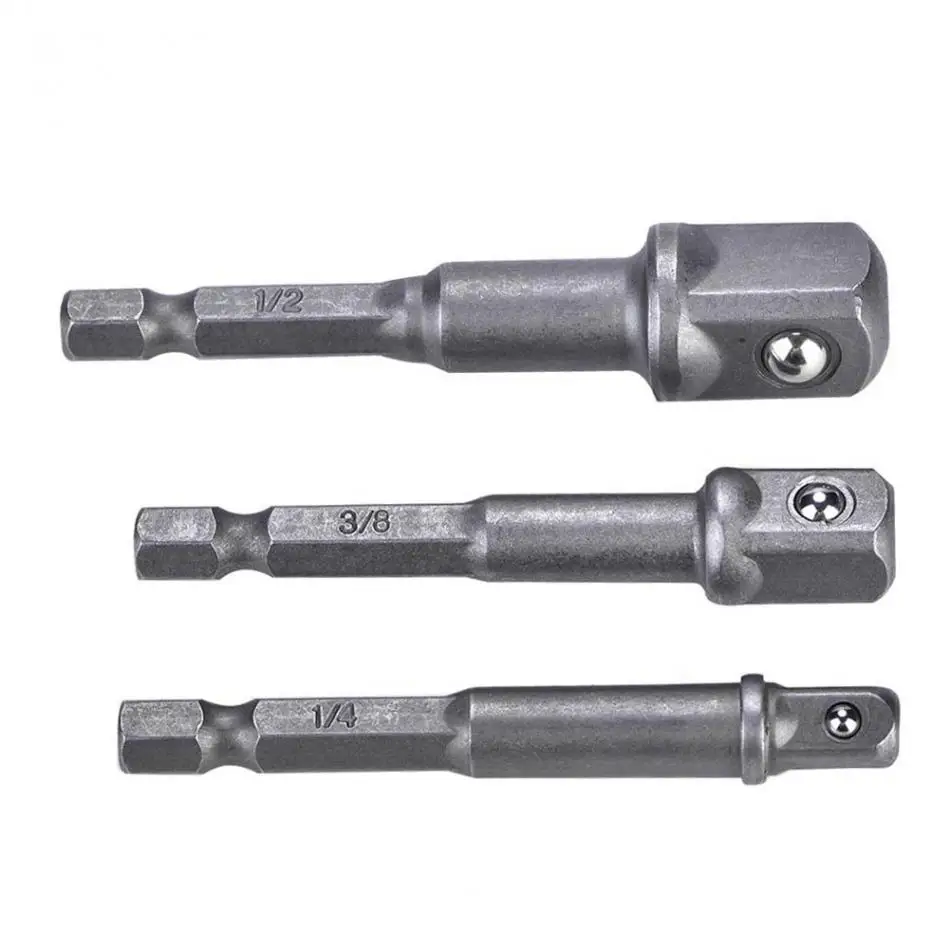 3Pcs/lot Socket Bit Adapter 1/4in Hex Shank to 1/4in 3/8in 1/2in Square Head Drill Bit Driver Socket Adapter Set