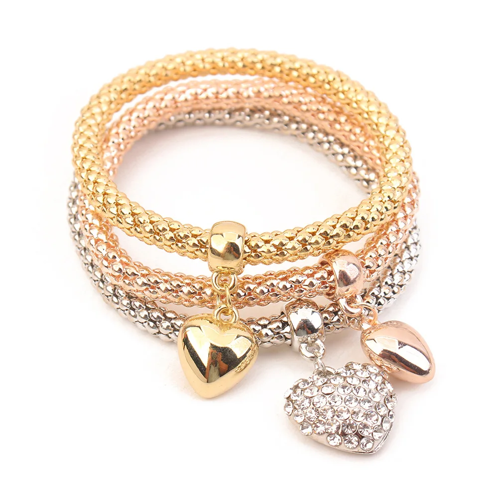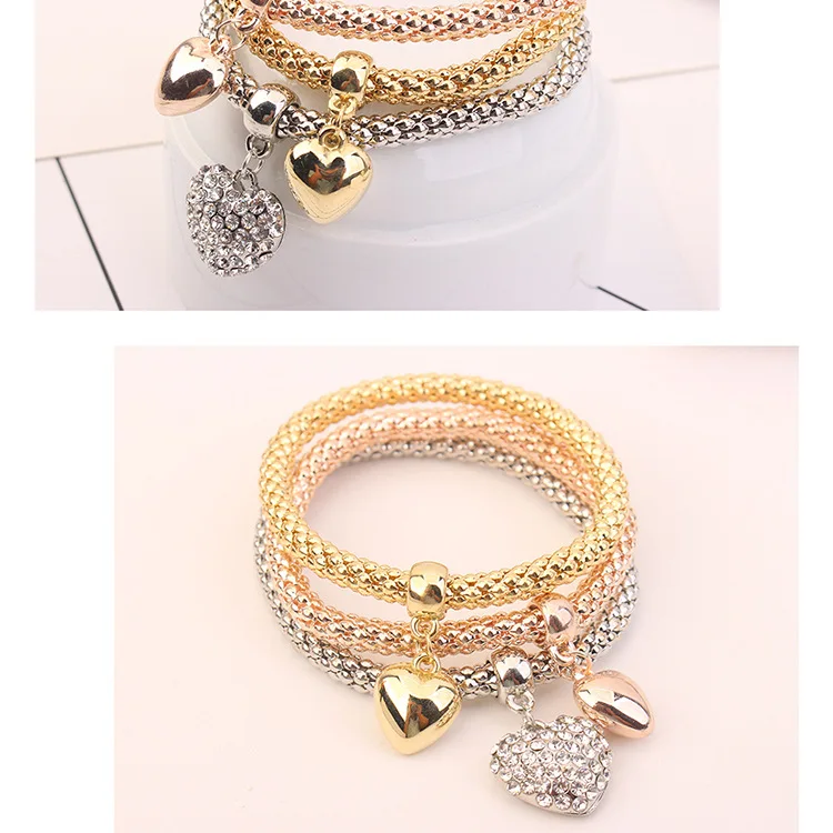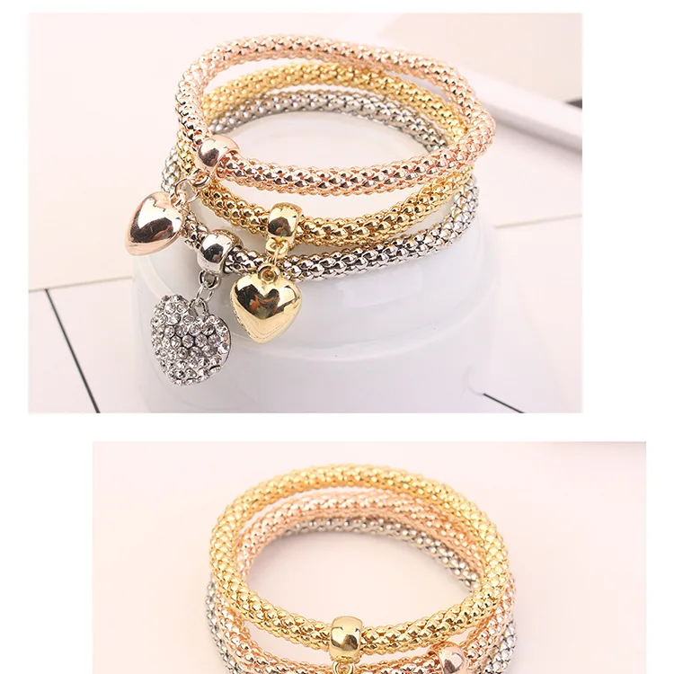3pcs/lot Three layers of popcorn, color, bracelet, temperament, three-dimensional peach hearts, hand strings, bracelet