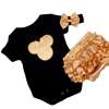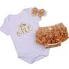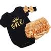3PCs per Set Baby Rompers Infant Clothing Glitter One 1st Birthday Cartoon Baby Girls Golden PP Bloomer Jumpersuit Headband