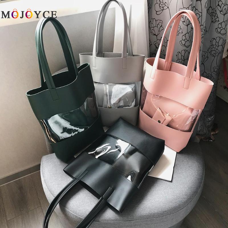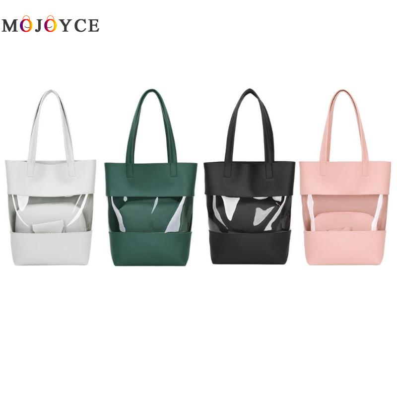 3pcs/set Fashion Women Transparent Clutch Shoulder Bags Change Purse Handbags Wallet Casual Accessories