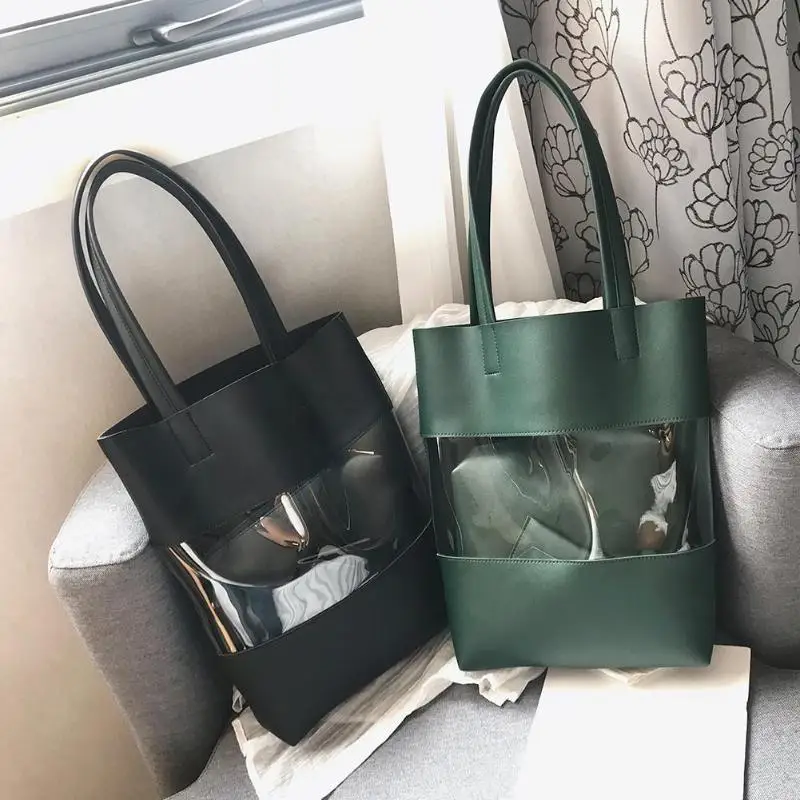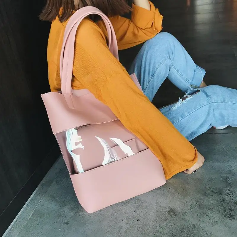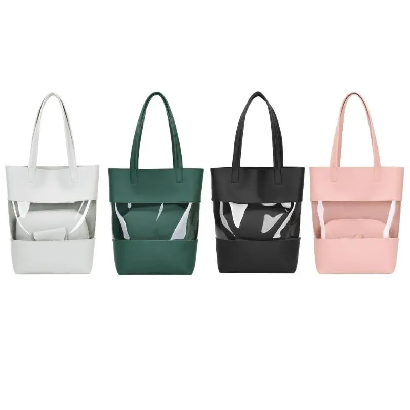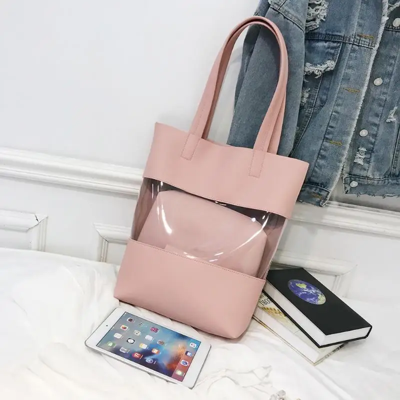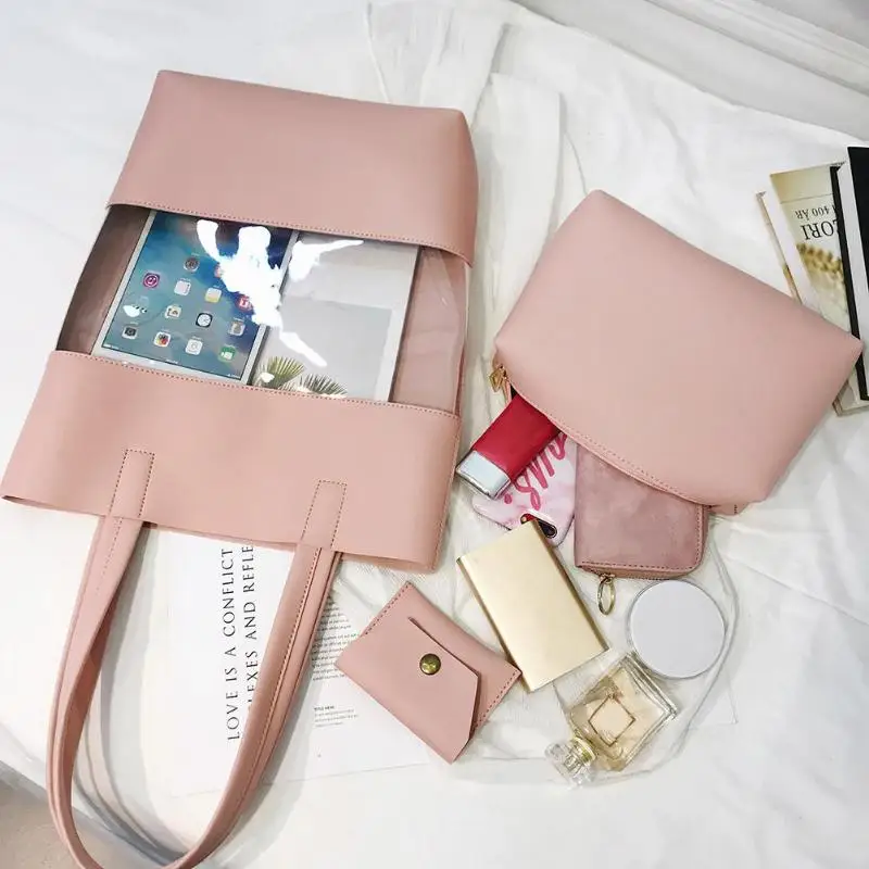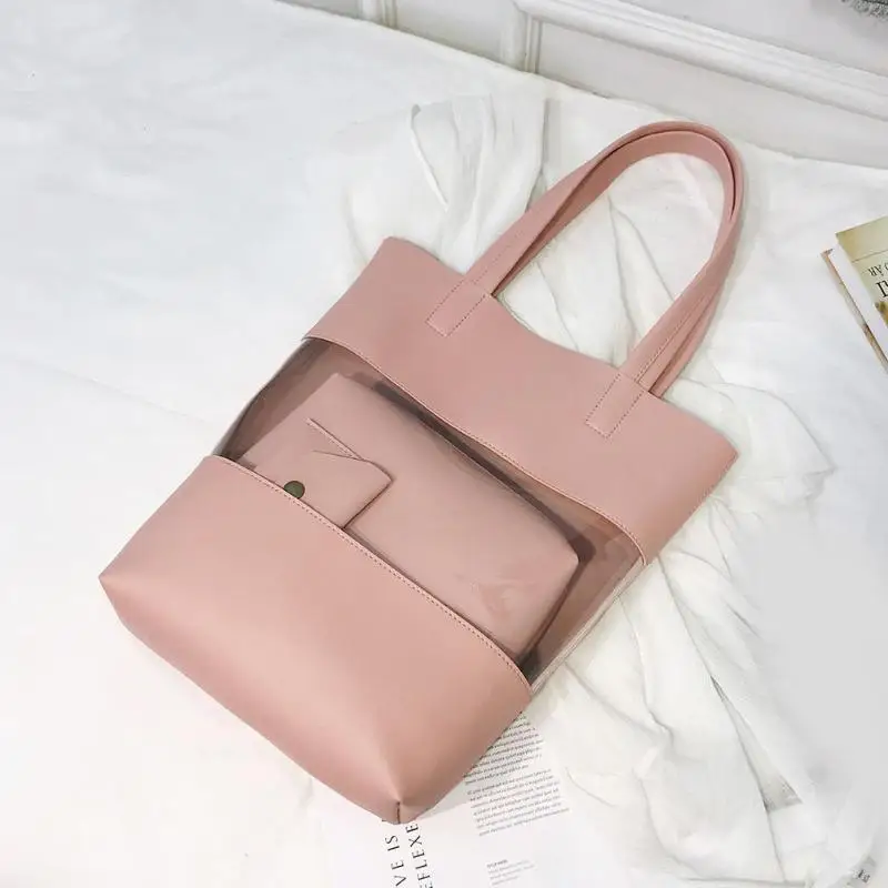 3pcs/set Fashion Women Transparent Clutch Shoulder Bags Change Purse Handbags Wallet Casual Accessories