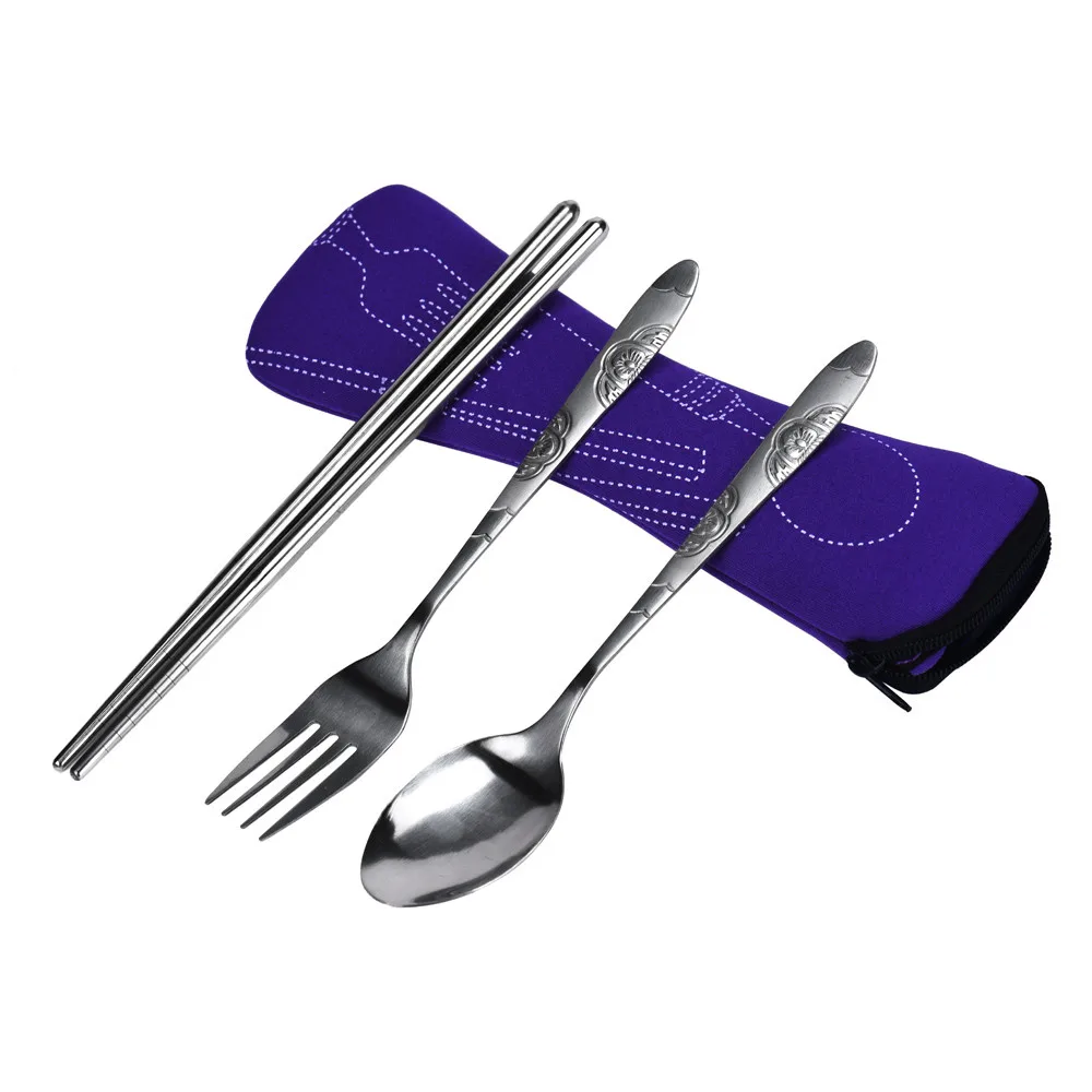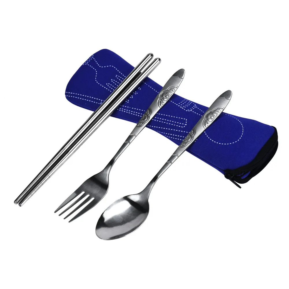 3pcs/set Stainless Steel Portable Tableware Dinnerware Travel Camping Bag Cutlery Set Fork poon Set Picnic Tool