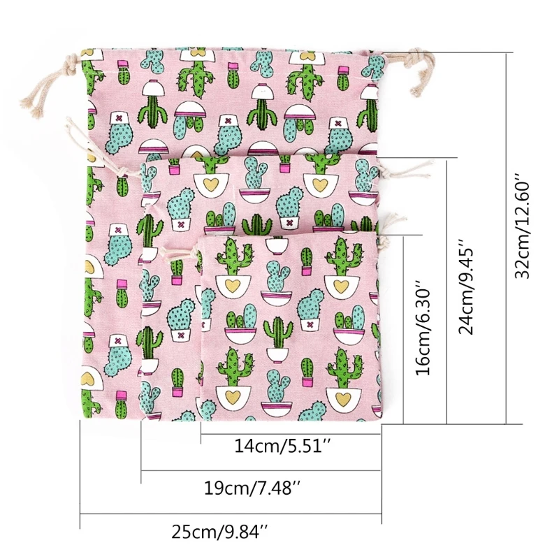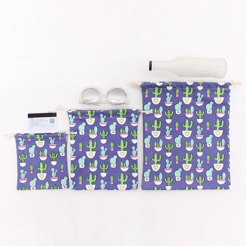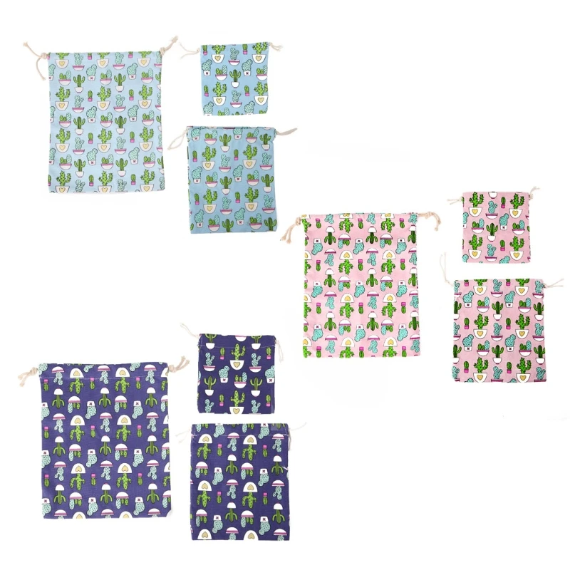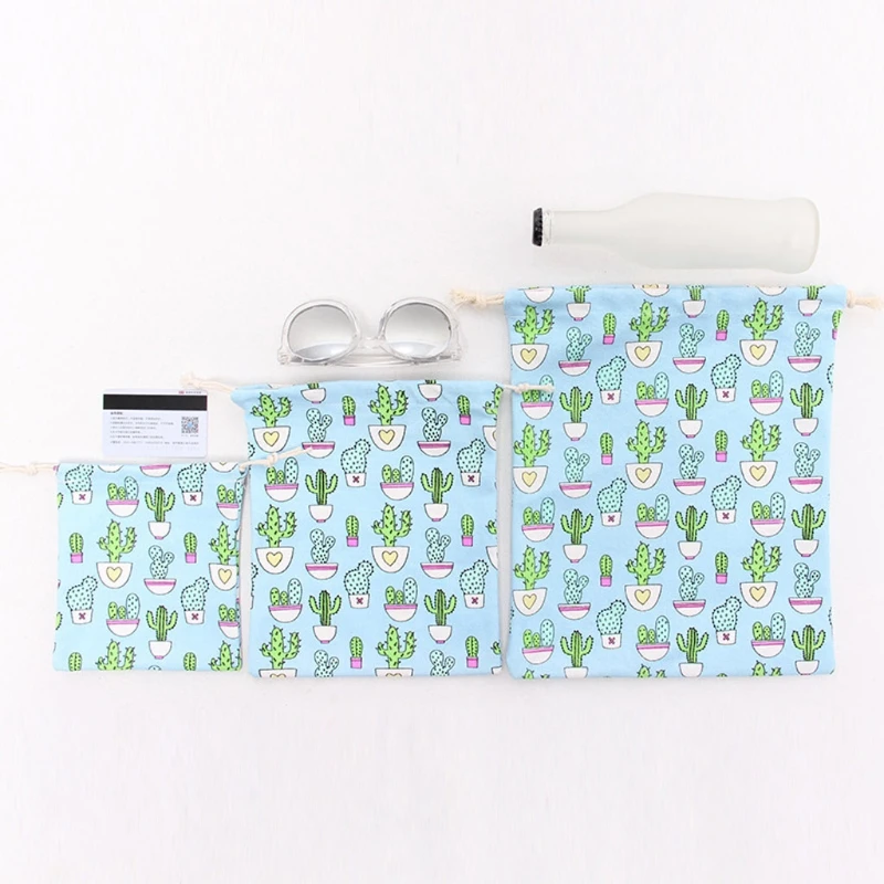 3pcs/set Travel Drawstring Bag Canvas Bags Pouch Laundry Craft Organizer