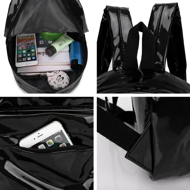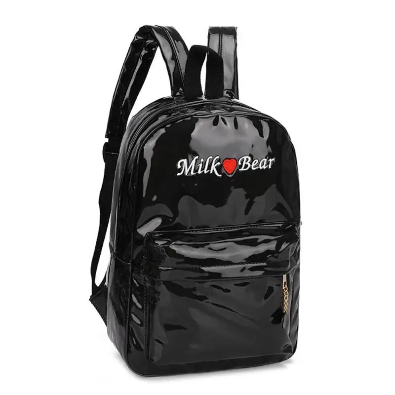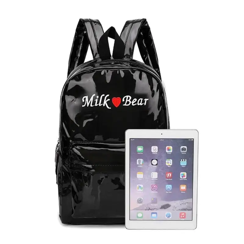 3pcs/Set Women PU Leather Backpacks Street Teen Laser Students Zipper Shoulder School Backpack Women Rucksack Mochila Feminina
