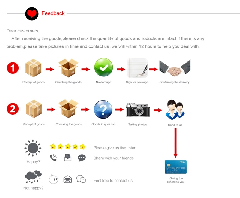 • If you received the wrong item you can request a refund or a reshipment.