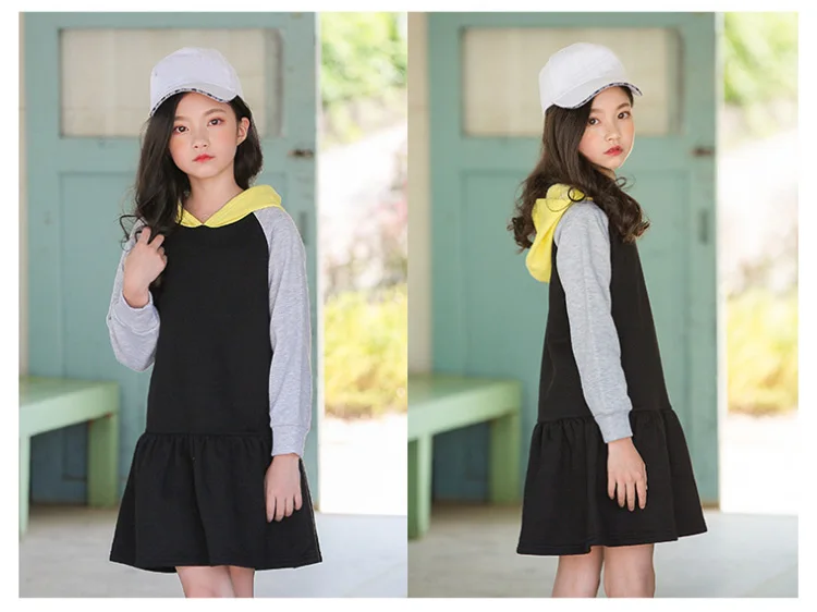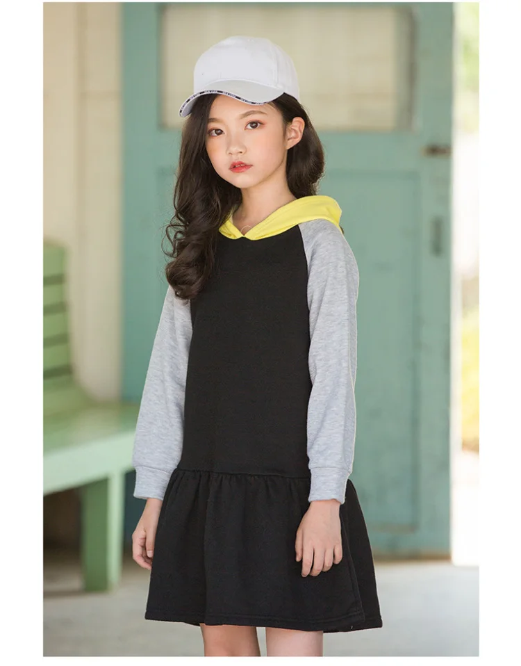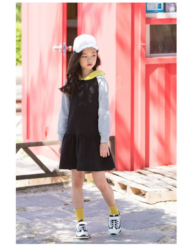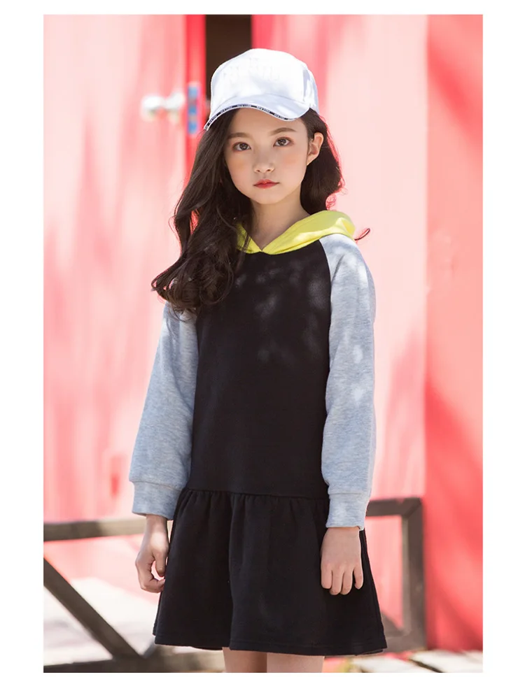 4 -14 yrs big girls casual school style hooded dress 2018 new winter autumn clothes thick warm teenage girls long sleeve dresses