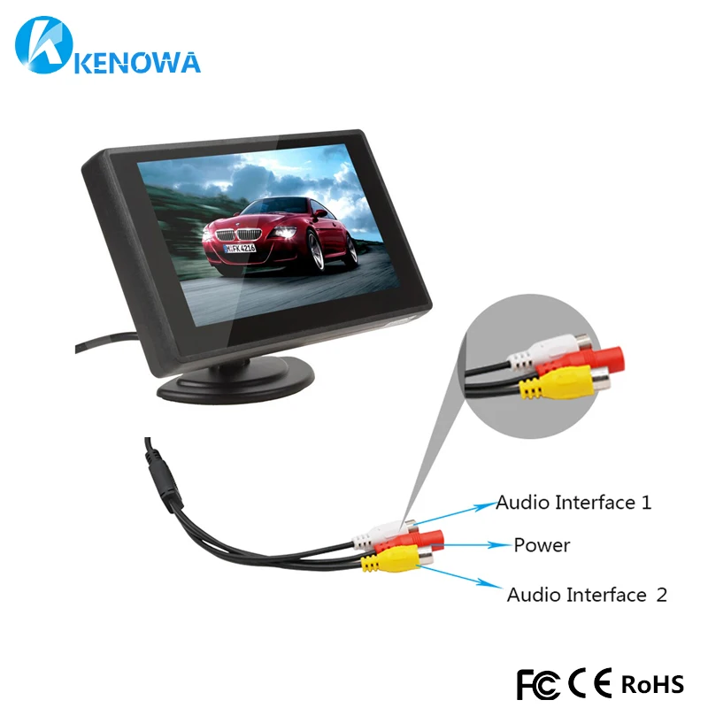 4.3 inch TFT LCD Monitor Car Reverse Parking monitor with 2 video input for Rear view Camera DVD