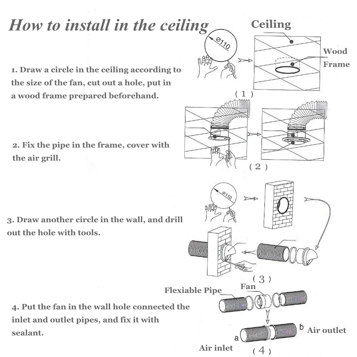 Installation: (4”)ø100mm, (5”)125mm, (6”)150mm