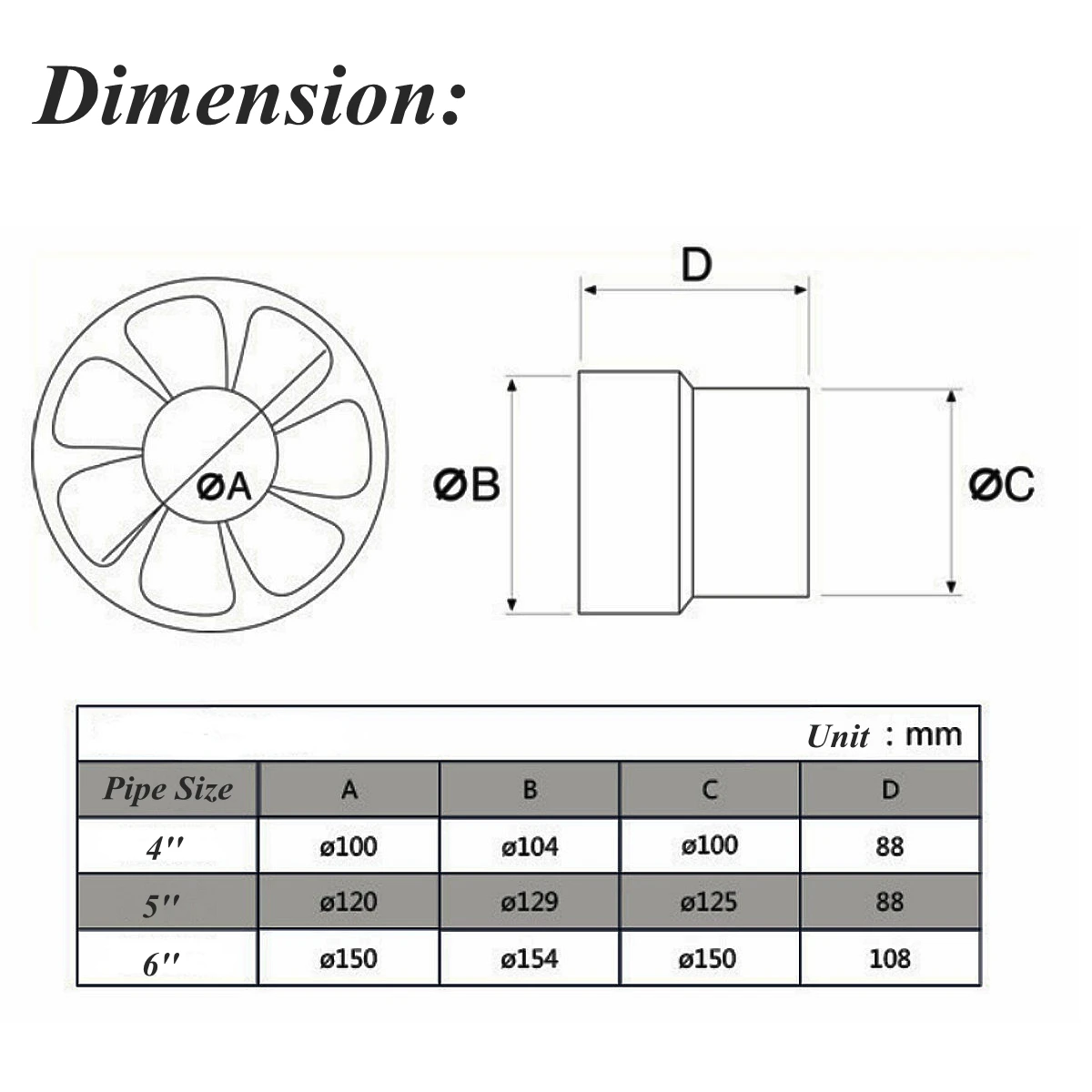 4/5/6 Inch Ventilator Air Vents Wall Ventilation Inline Ducted Fan Pipe Exhaust Extractor Fan 220V for Bathroom Kitchen Toilet
