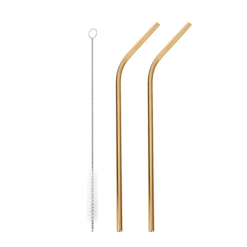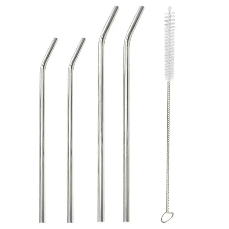 Reusable Drinking Straws Cleaner Brush Set Stainless Steel Metal Straws Home Party Bar Accessories