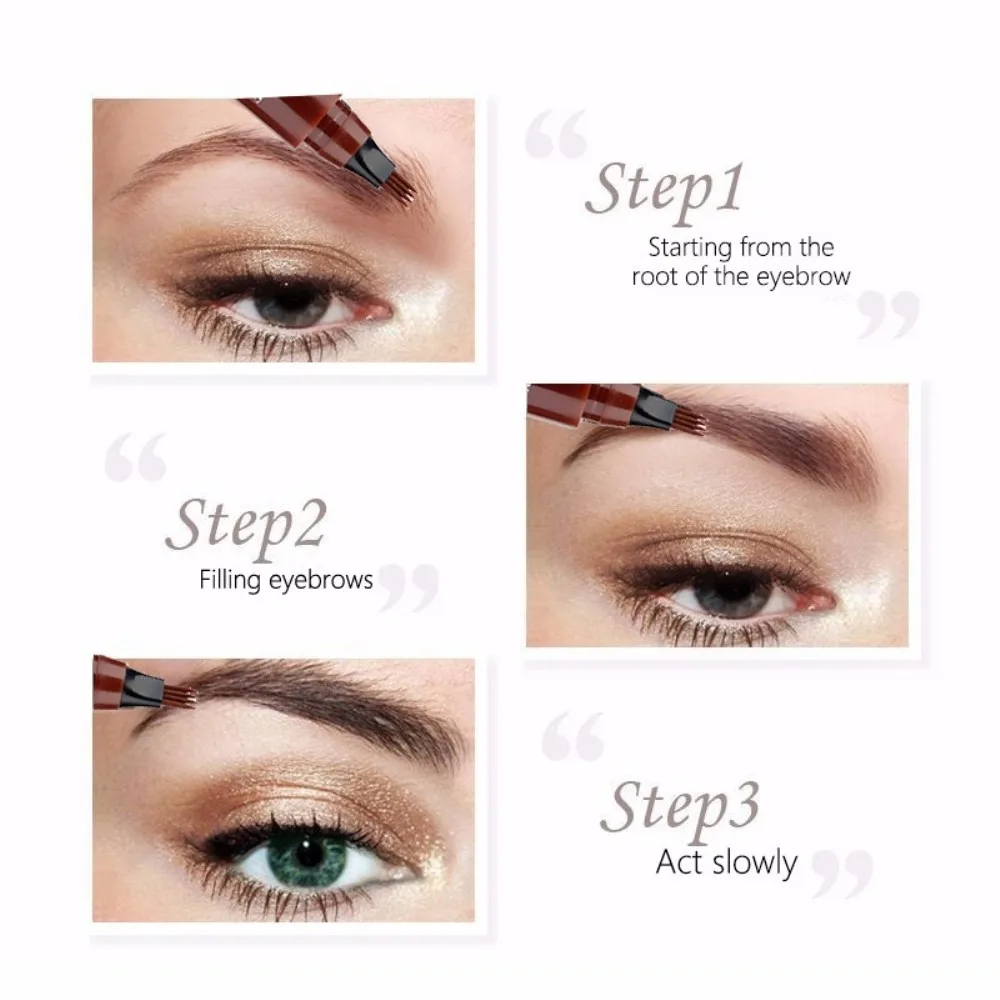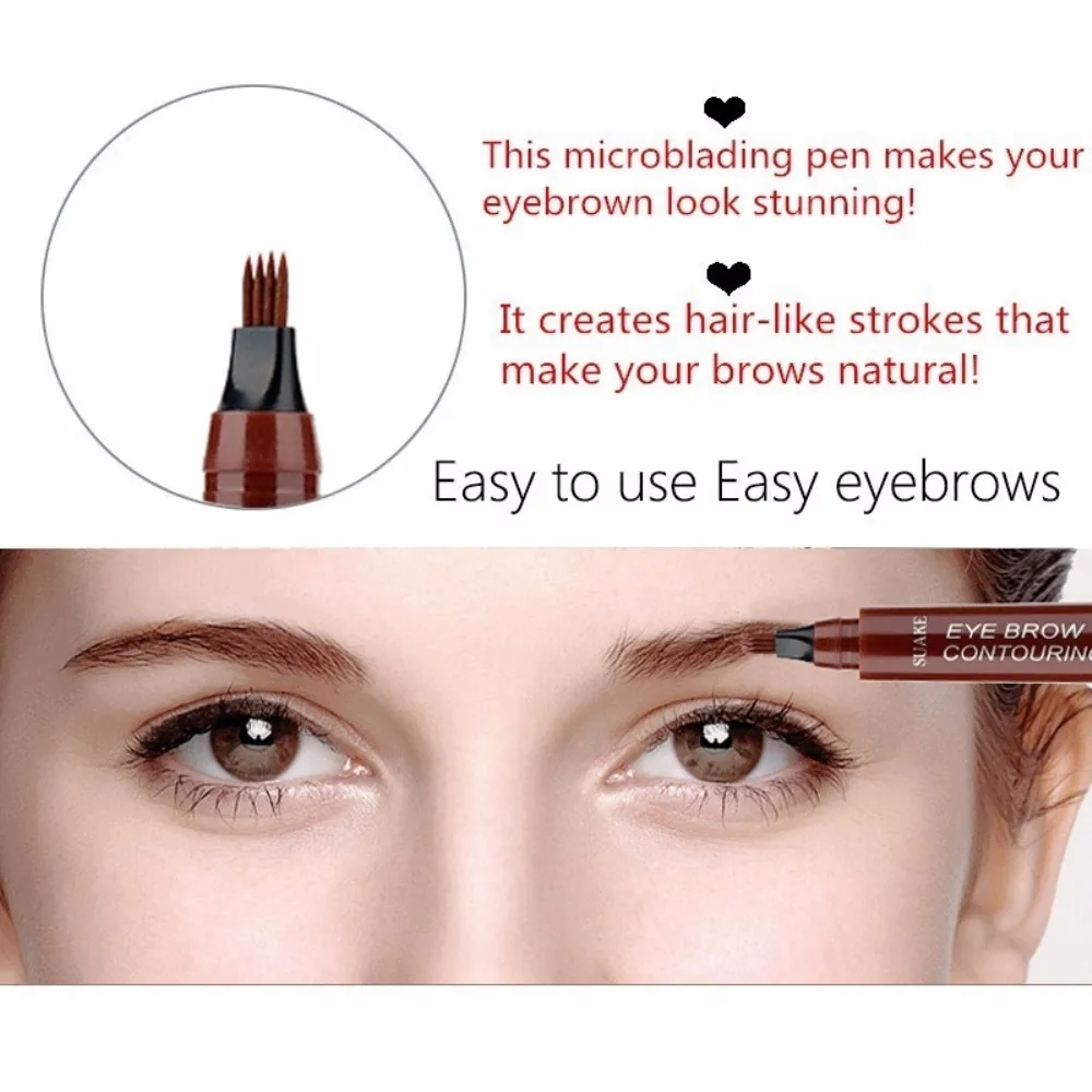 4 Colors 3D Microblading Waterproof Eyebrow Tattoo Pen 4 Head Fine Sketch Enhancer Fork Tip Eyebrow Tattoo Pencil Tint Gel Makeup Tool