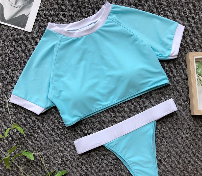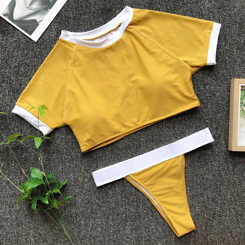 4 Colors Sexy High Cut Leg Sports Bikini Sets 2018 Summer Women Two Pieces Swimsuits Solid Biquini Maillot De Bain Monokini