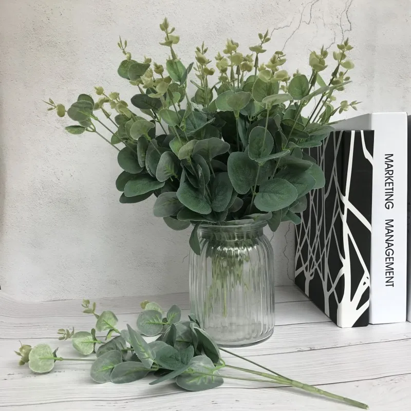 4 Fork Eucalyptus Leaf Plants Green Artificial Leaves Wall Material Decorative Fake Plants For Home Shop Garden Party Decora