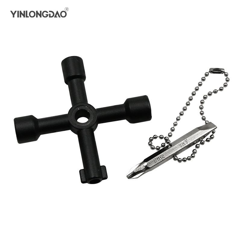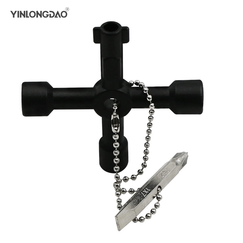 YINLONGDAO 4 In 1 Cross Switch Key Wrench With Accessories Universal Square Triangle Train Electrical Cupboard Box Elevator Cabinet Alloy