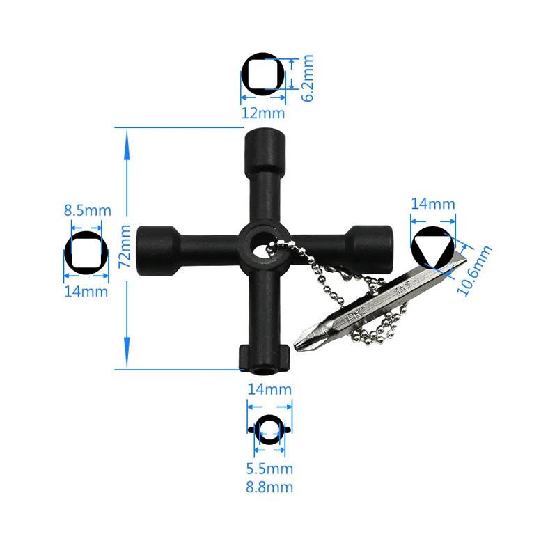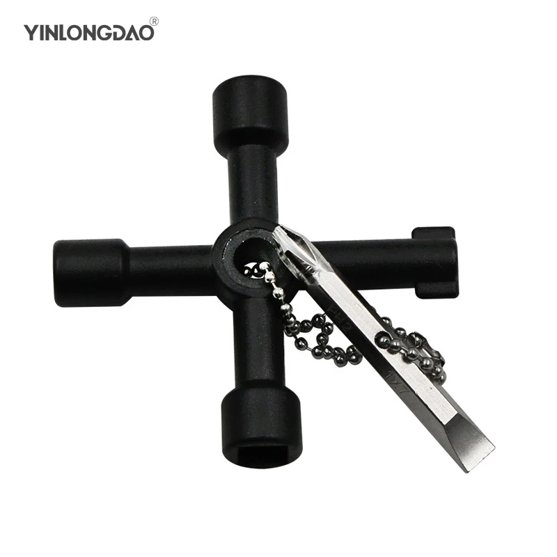 YINLONGDAO 4 In 1 Cross Switch Key Wrench With Accessories Universal Square Triangle Train Electrical Cupboard Box Elevator Cabinet Alloy