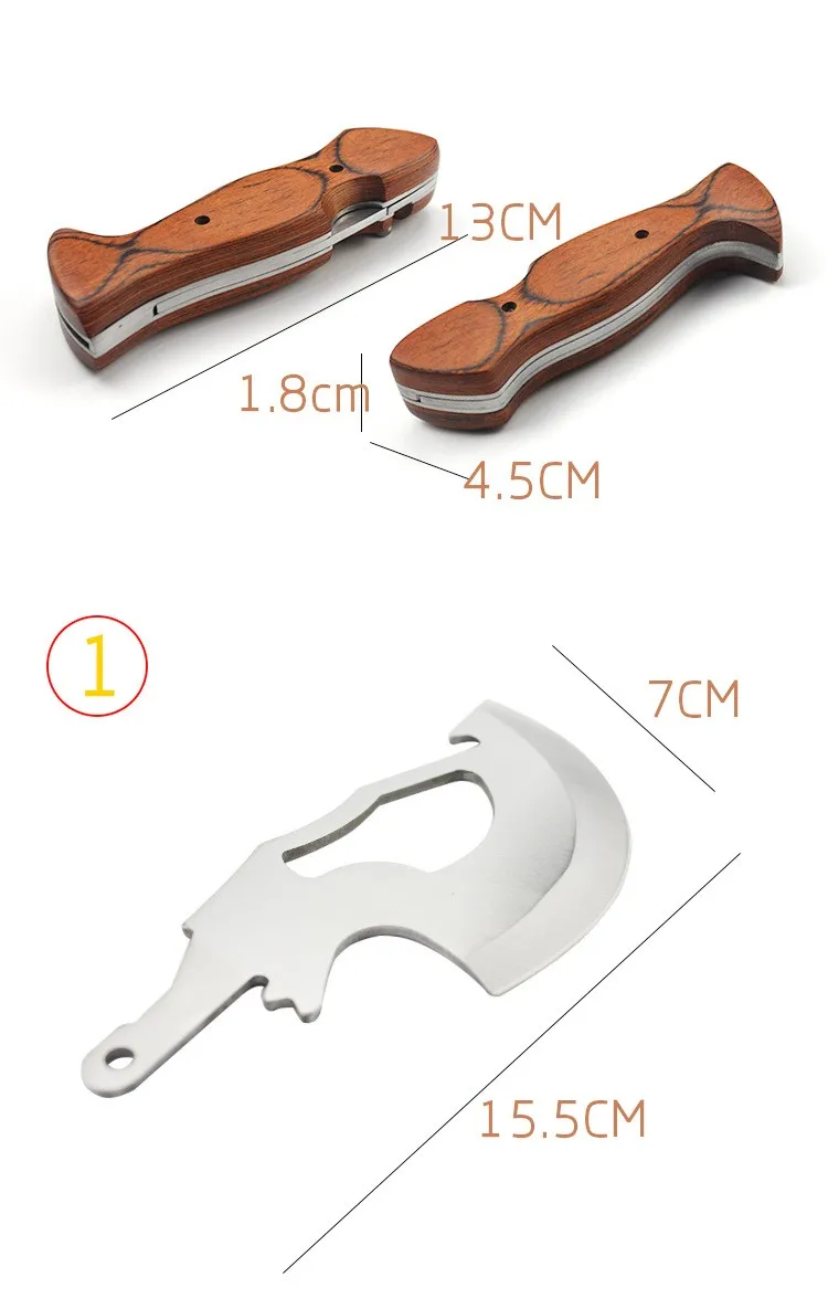 The axe head have inner hexagon wrench and cutting the rope function , the butcher’s knife