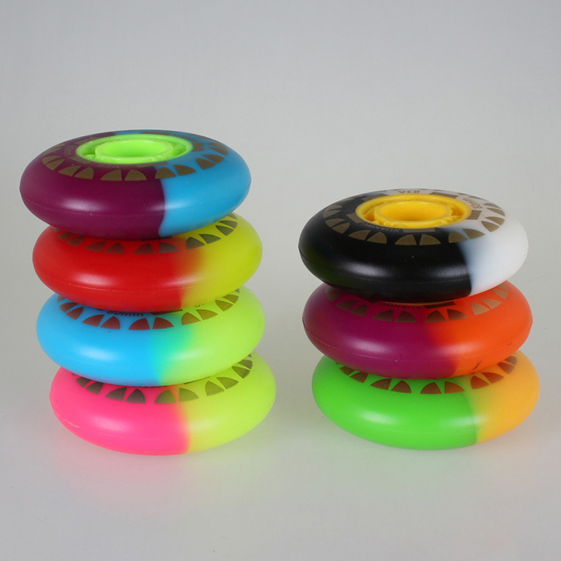 4 x Flash Roller Wheels Double Colors LED Light Inline Skates Slalom Braking PU Wheel 72/76/80mm B2Cshop