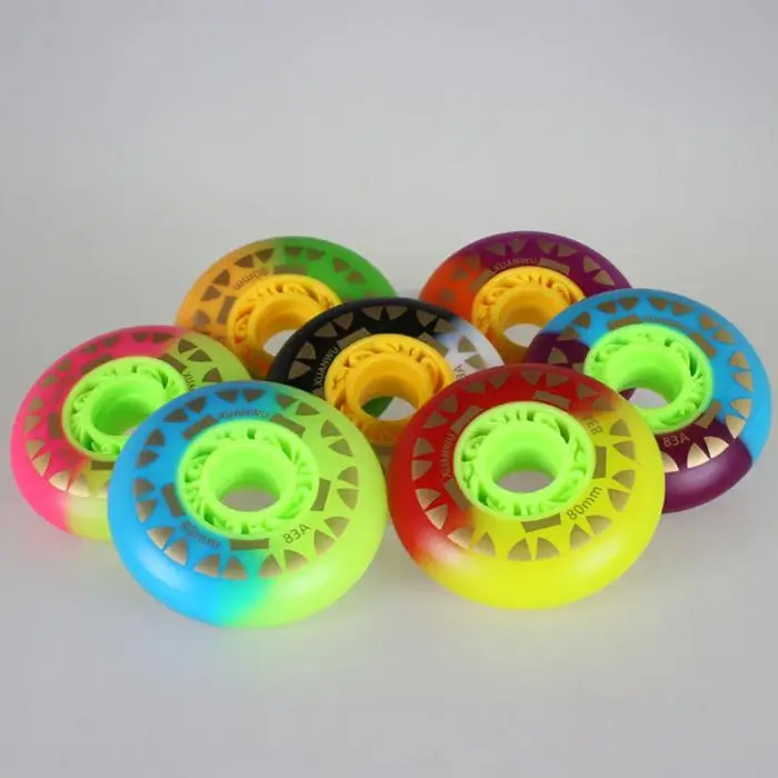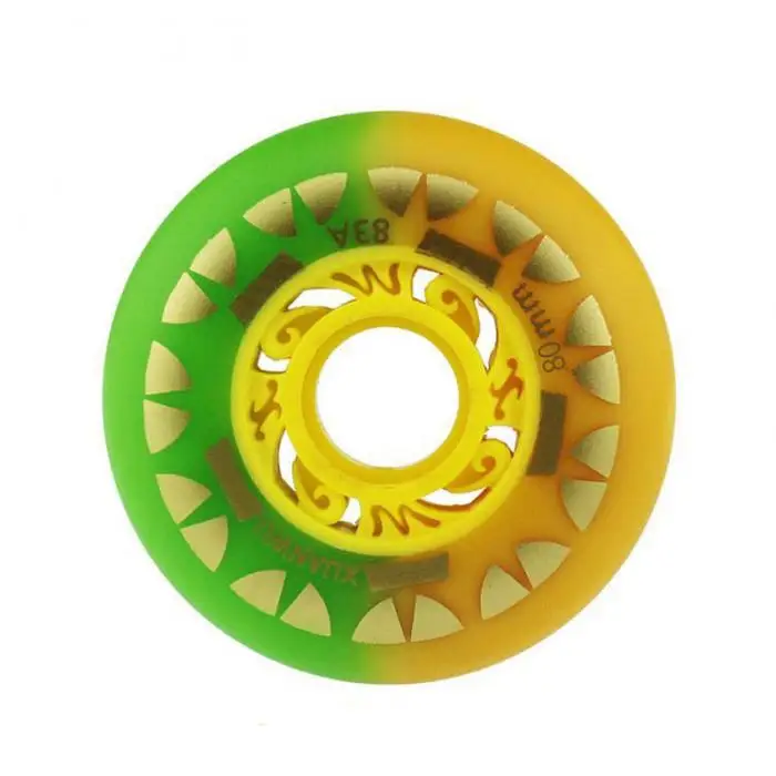 4 x Flash Roller Wheels Double Colors LED Light Inline Skates Slalom Braking PU Wheel 72/76/80mm B2Cshop