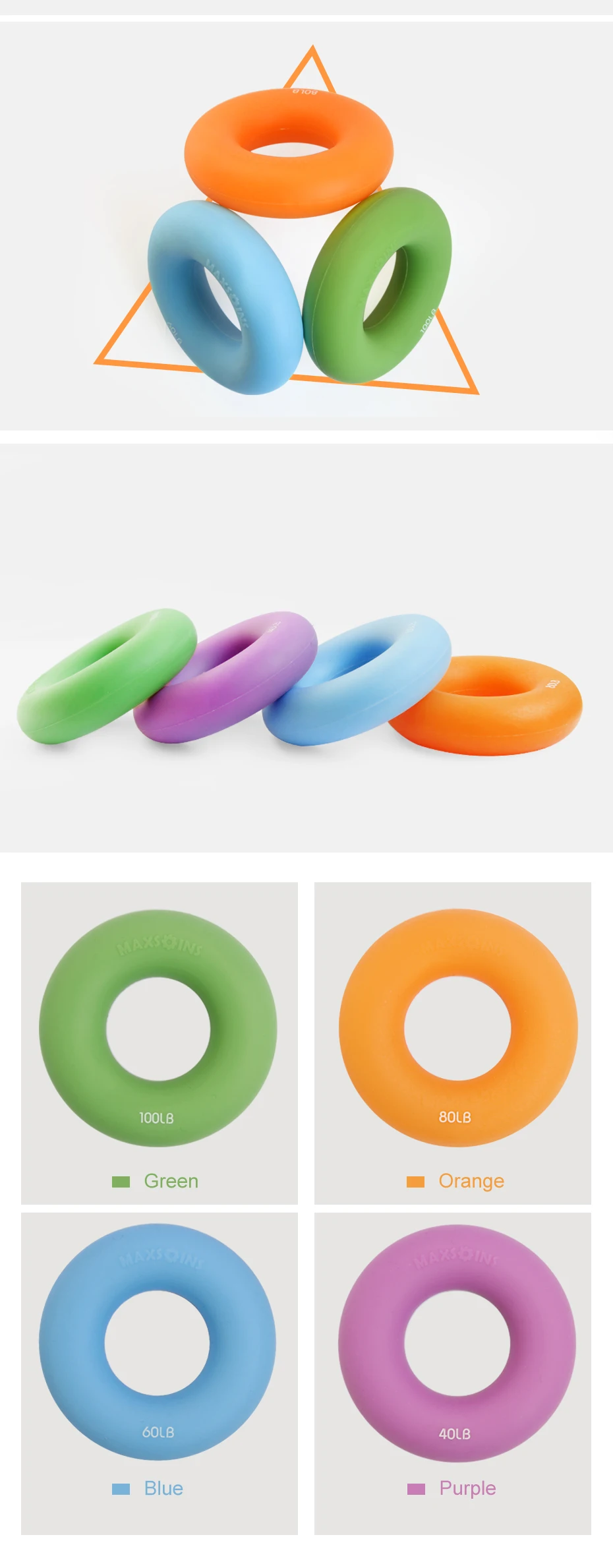 40/60/80/100 LB Silica Gel Hand Trainer Grip Portable Hand Grip Gripping Ring Carpal Expander Strength Trainer Stress Ring Ball