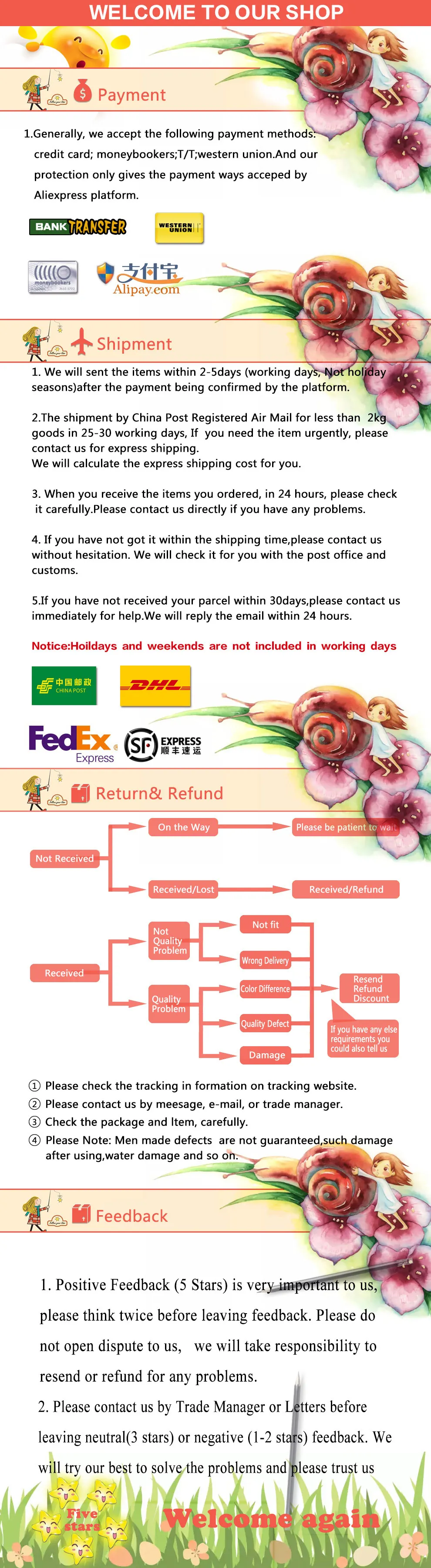 • If you did not receive the product within the guaranteed time( 45 days not including 2-5 day processing) you can request a refund or a reshipment.
