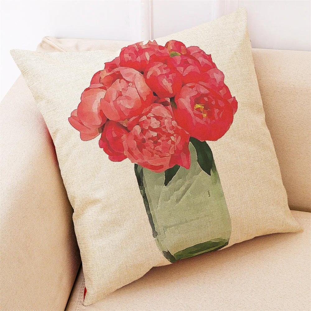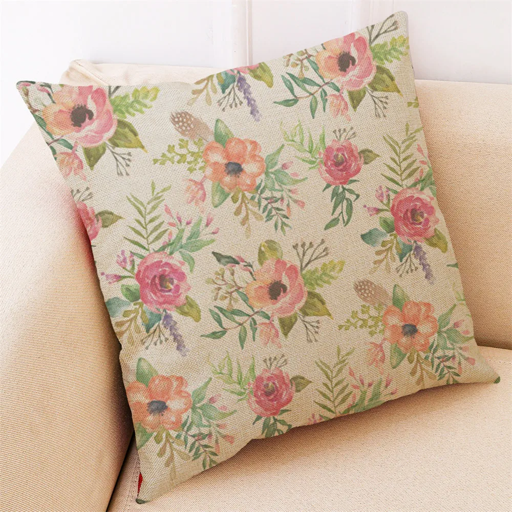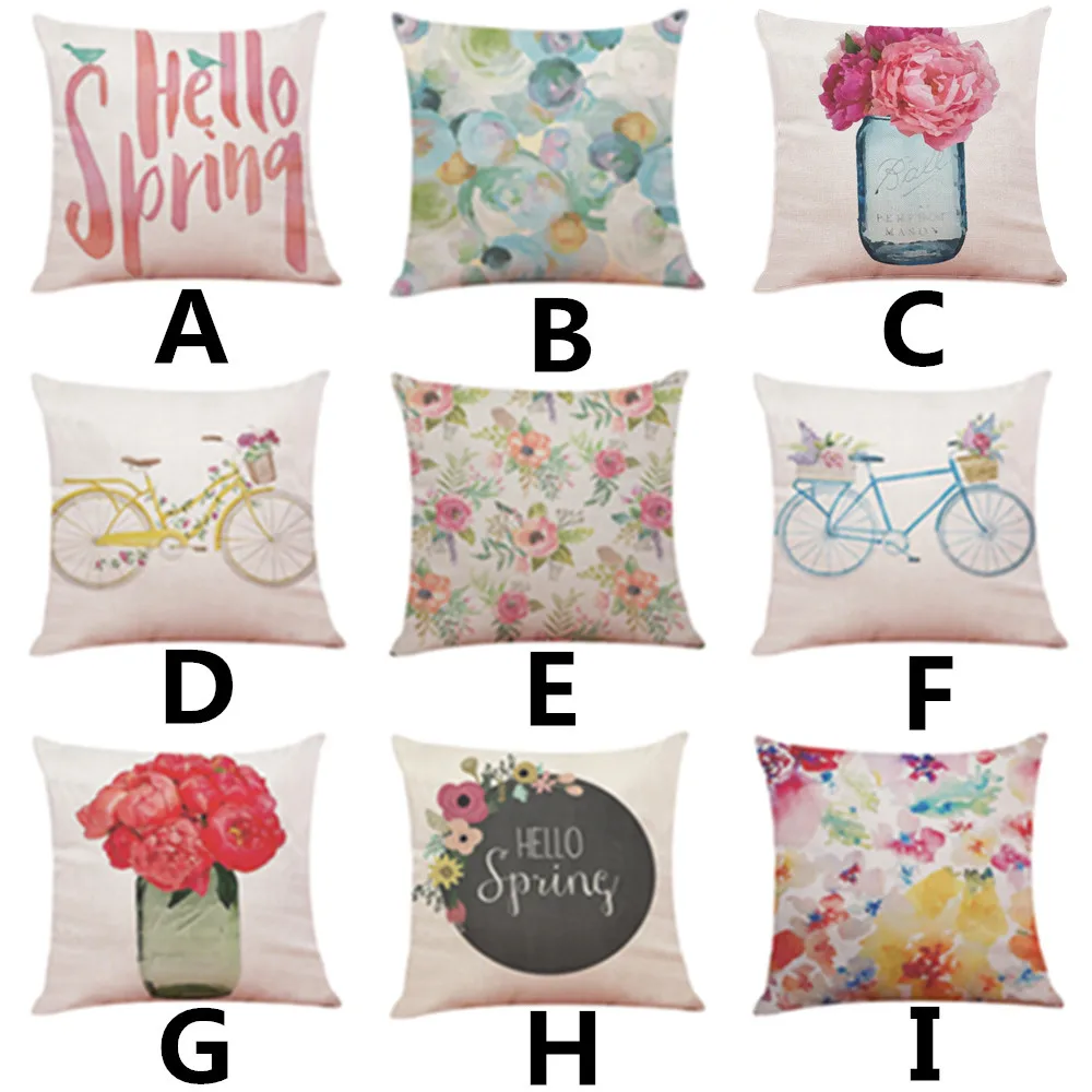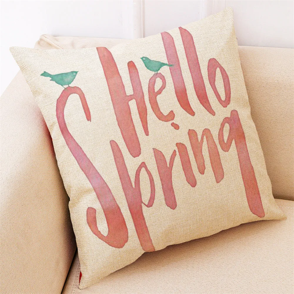 45*45cm Home Hello Spring Throw Pillowcase Flowers Pillow Covers Pillowcase Linen Blend Pillow Cases Pillow Cover Vogue