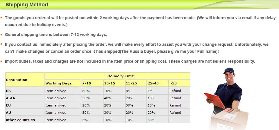 *You can submit refund requests within 15 days after the guaranteed period for delivery (45 days) has expired. You can do it by sending a message on Contact Us page