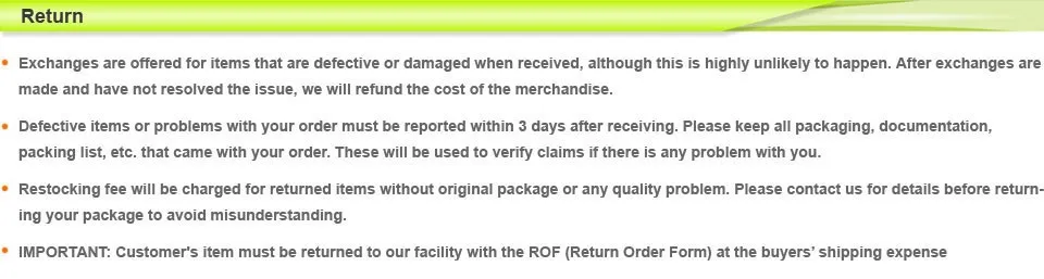 • If you do not want the product you’ve received you may request a refund but you must return the item at your expense and the item must be unused.