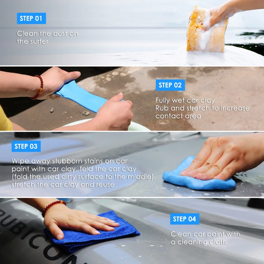 Car Detailing Clay needs to be soaked in water before use, then use proper strength to wash with water or wash car fluid.