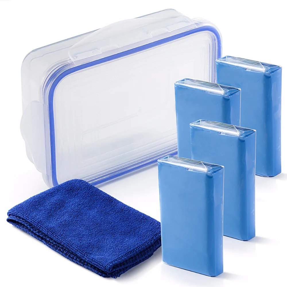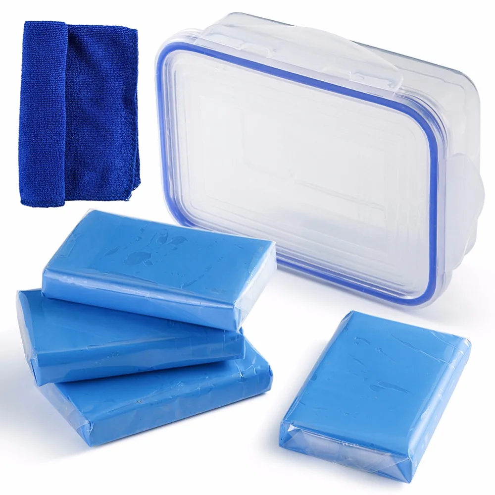 4pcs/lot 400g Car Wash Magic Mud Clay Brush Detailing Cleaner Bar Clean Auto Washer With Towel Storage Holder Box